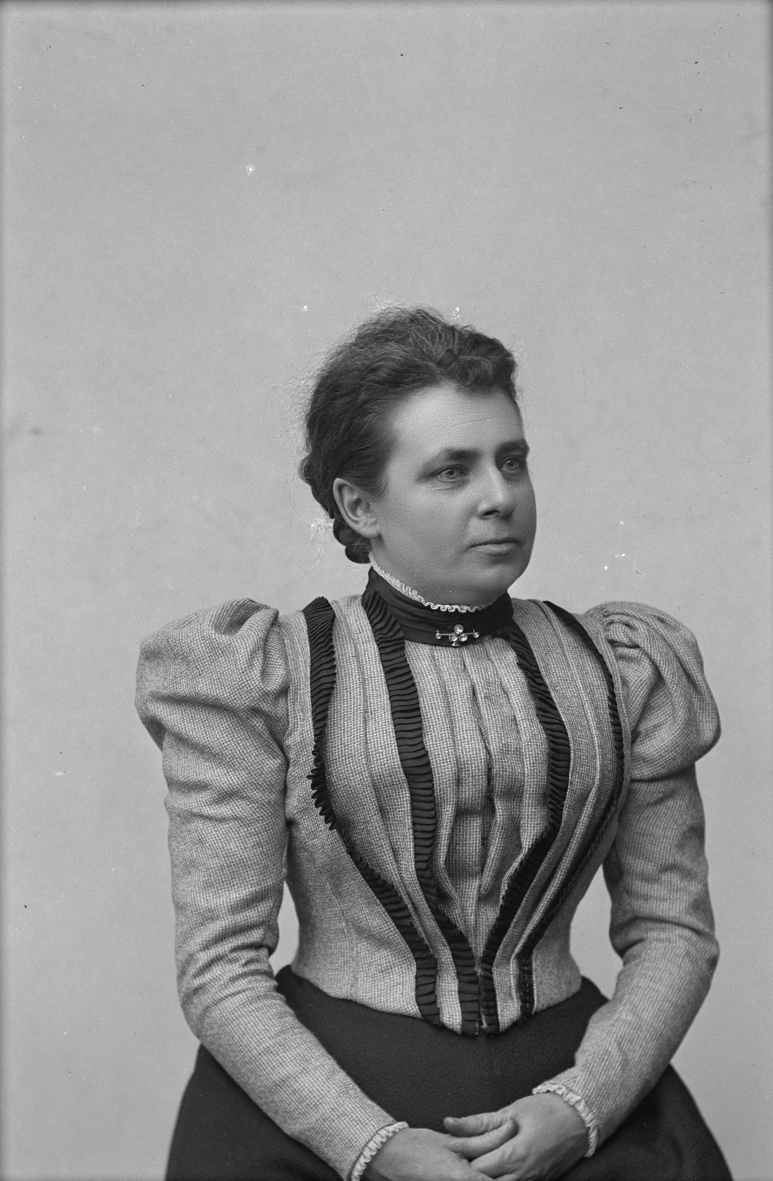 Beskrivning: Porträtt i halvfigur av Helene Hagerman.