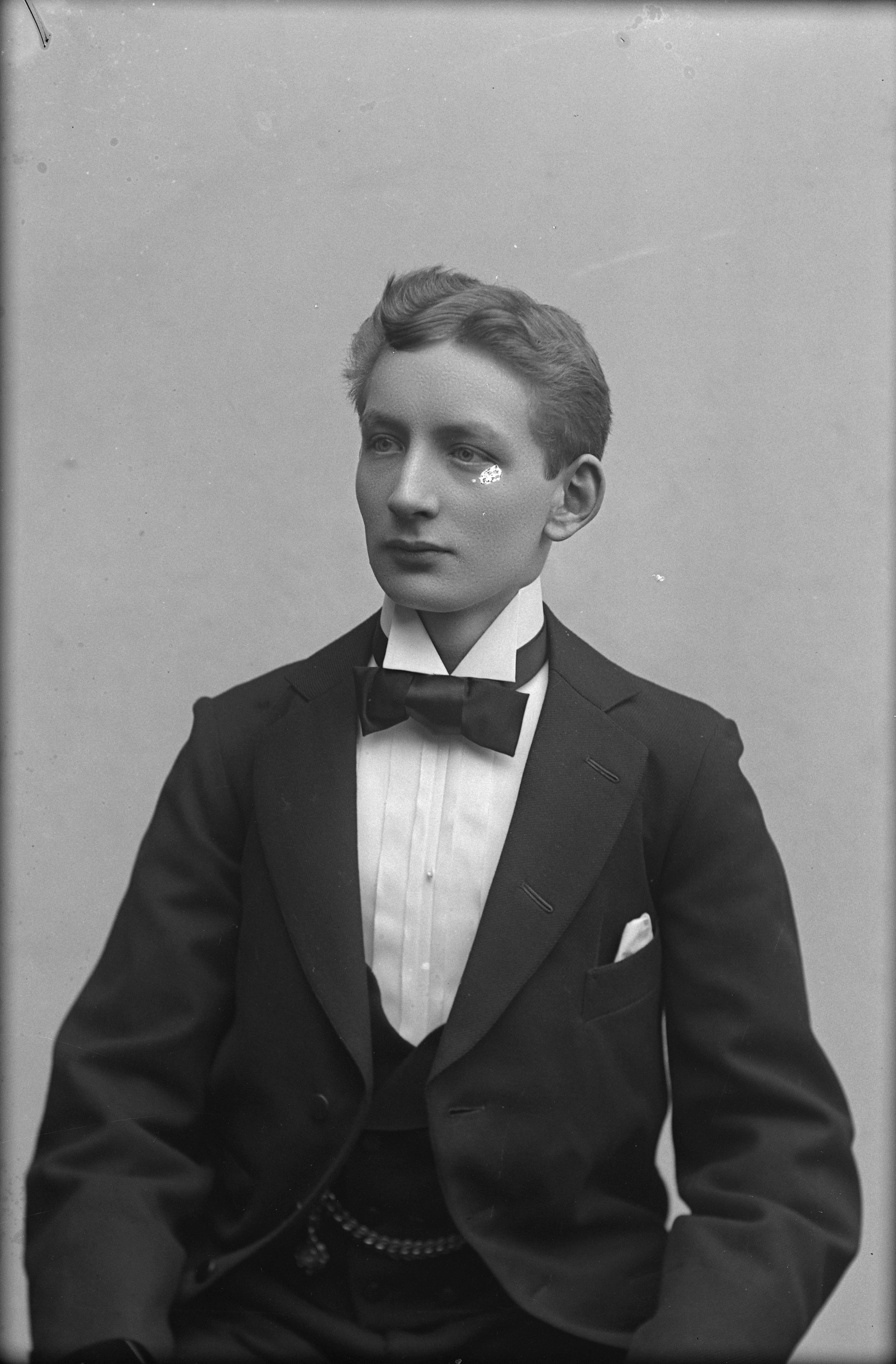 Porträtt i halvfigur av O. Jönsson, frisör.