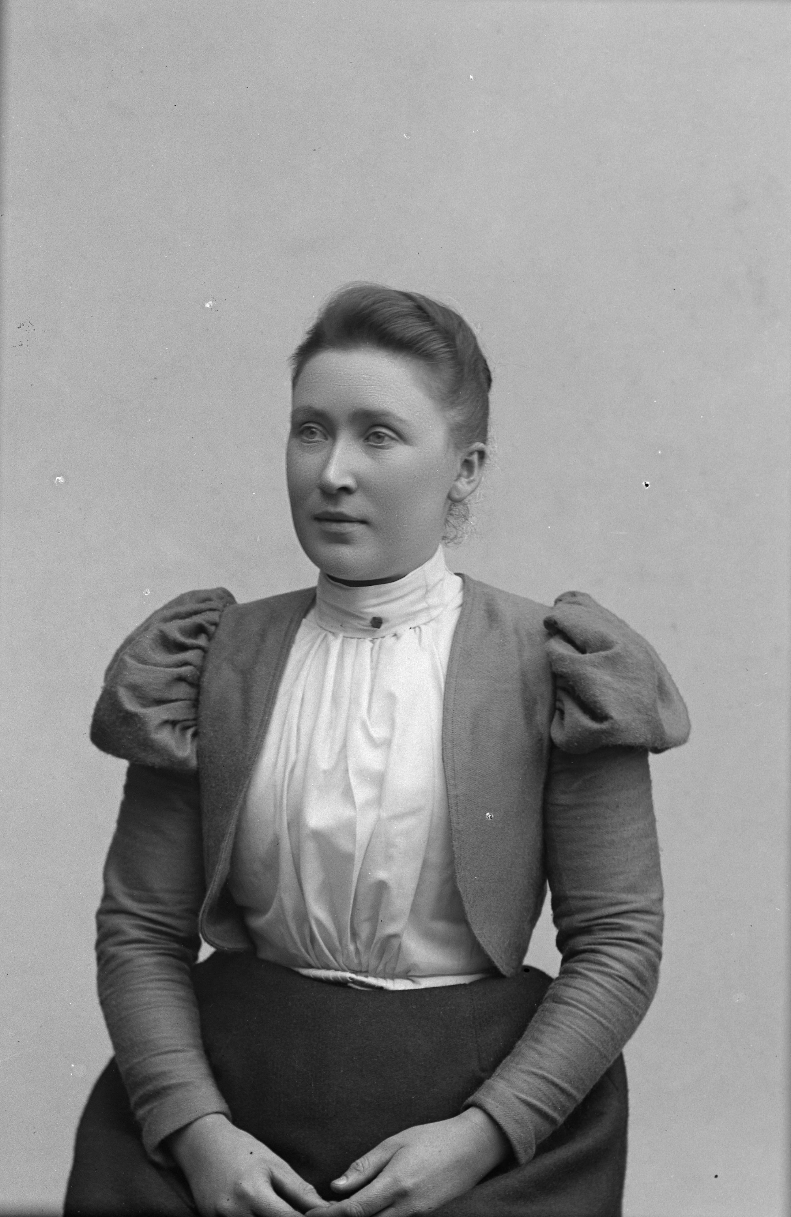 Beskrivning: Porträtt halvfigur av Thilda Nilsson.