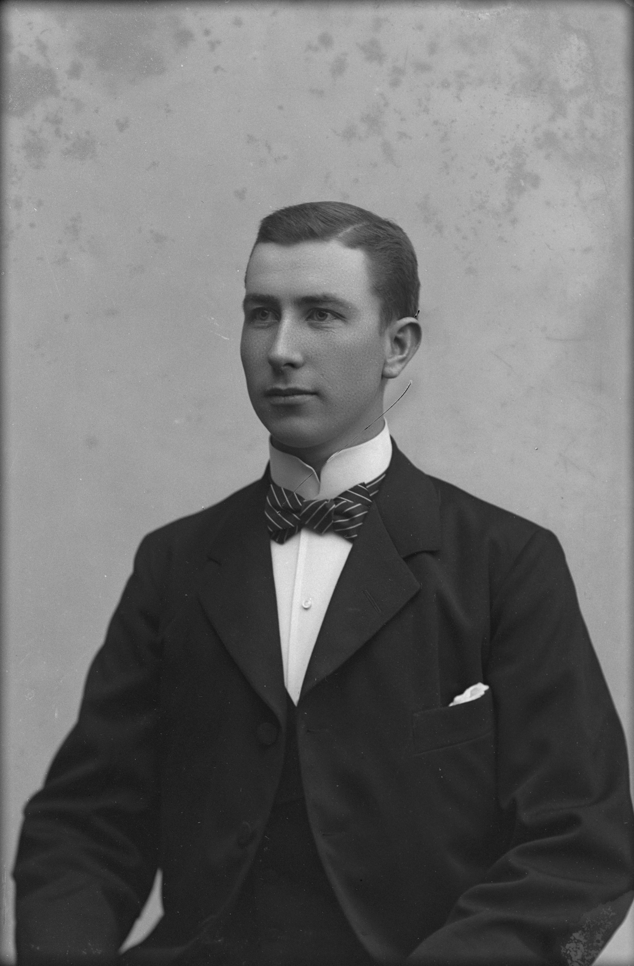 Beskrivning: Porträtt i halvfigur av Alf Lindquist.