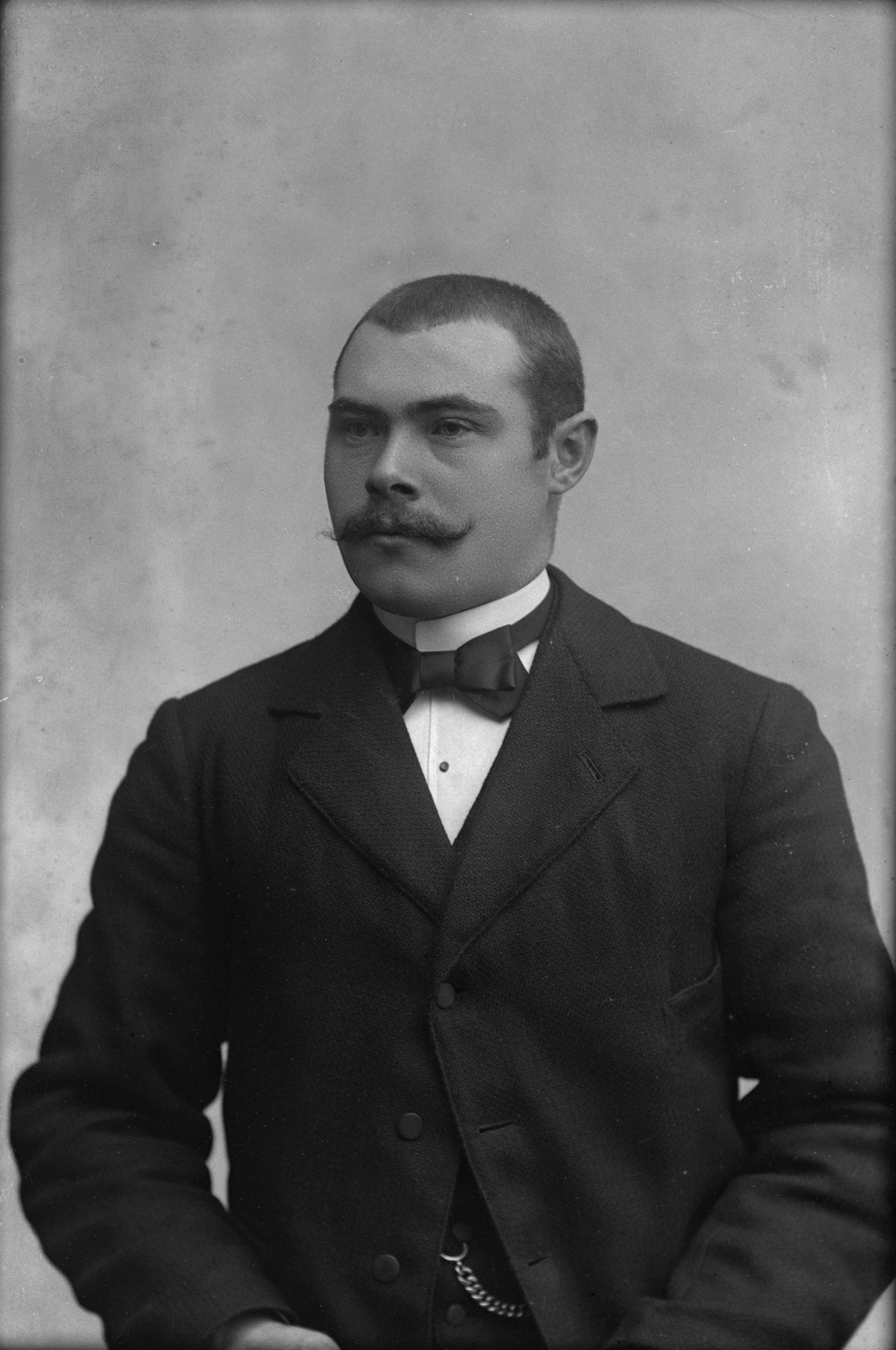 Beskrivning: Porträtt i halvfigur av A. Andersson.
