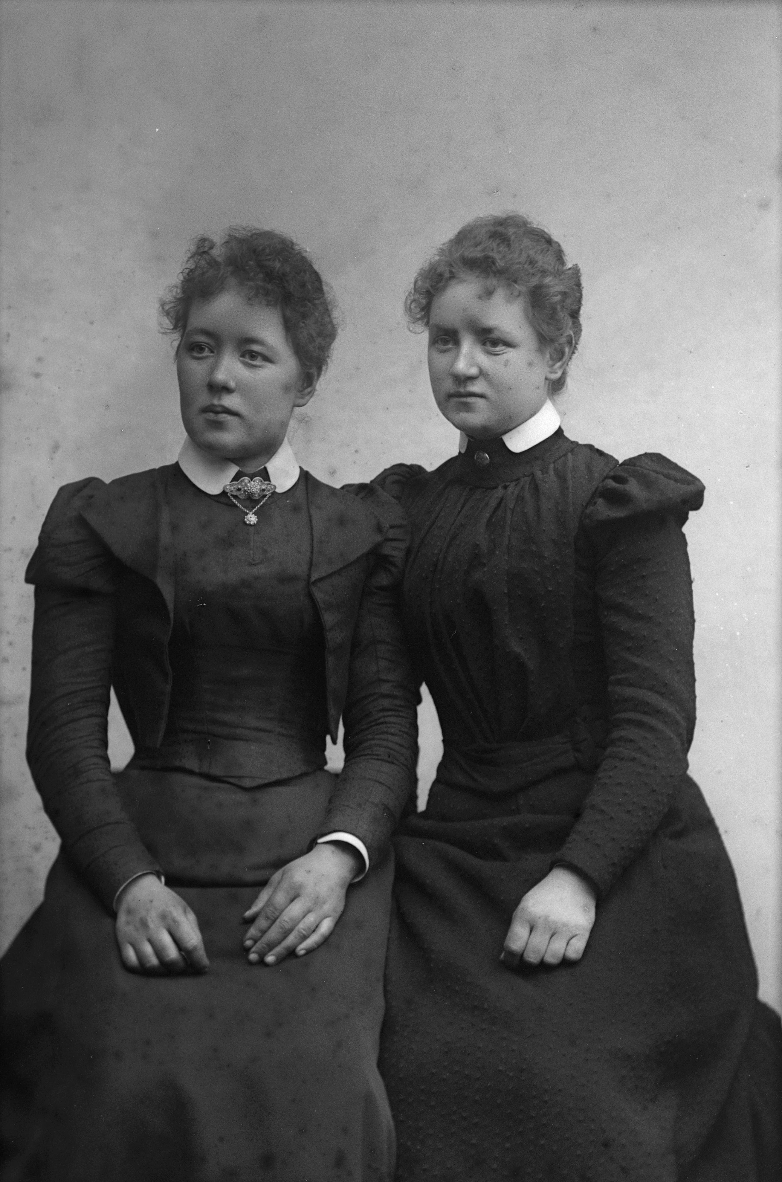 Beskrivning: Porträtt i helfigur av Elise och Ida Andersson.