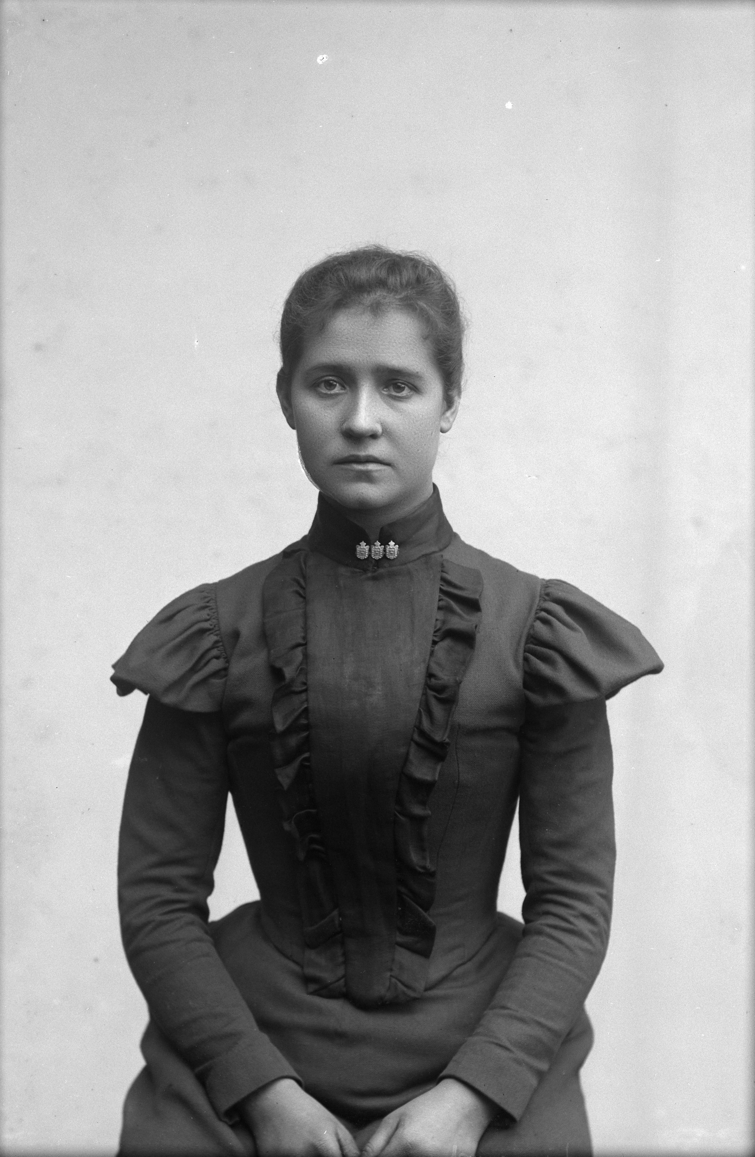 Beskrivning: Porträtt i halvfigur av Hanna Bengtsson Frick.