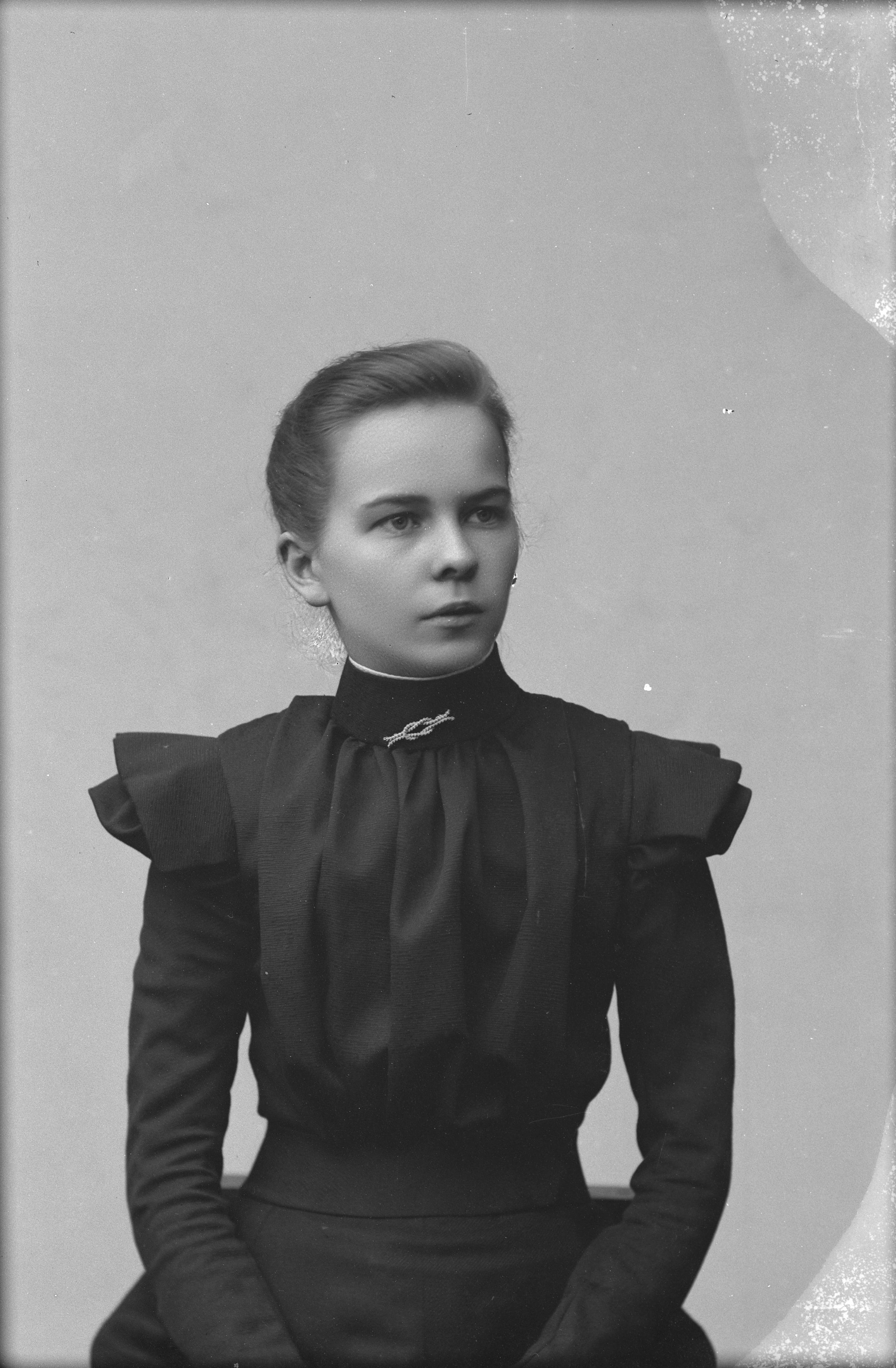 Beskrivning: Porträtt i halvfigur av Ellen Krantz.