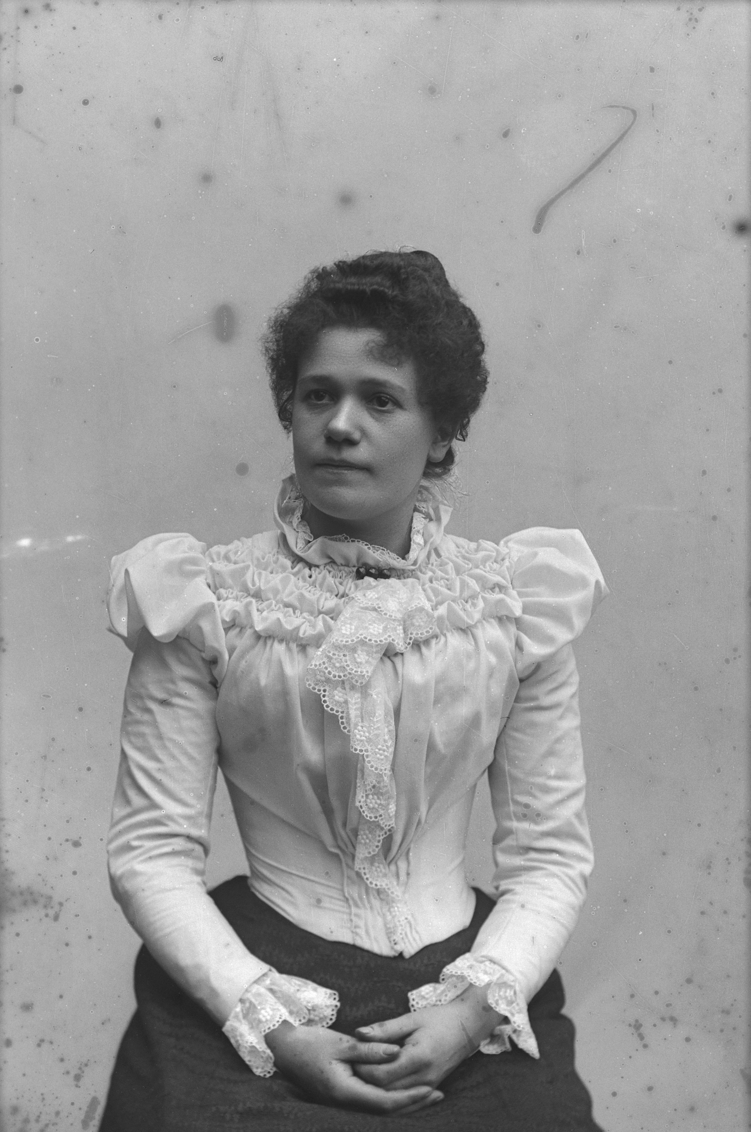 Porträtt i halvfigur av Albertina Askengren, tvätterksa. Gift med typograf Edvin Hall (1876-1926).