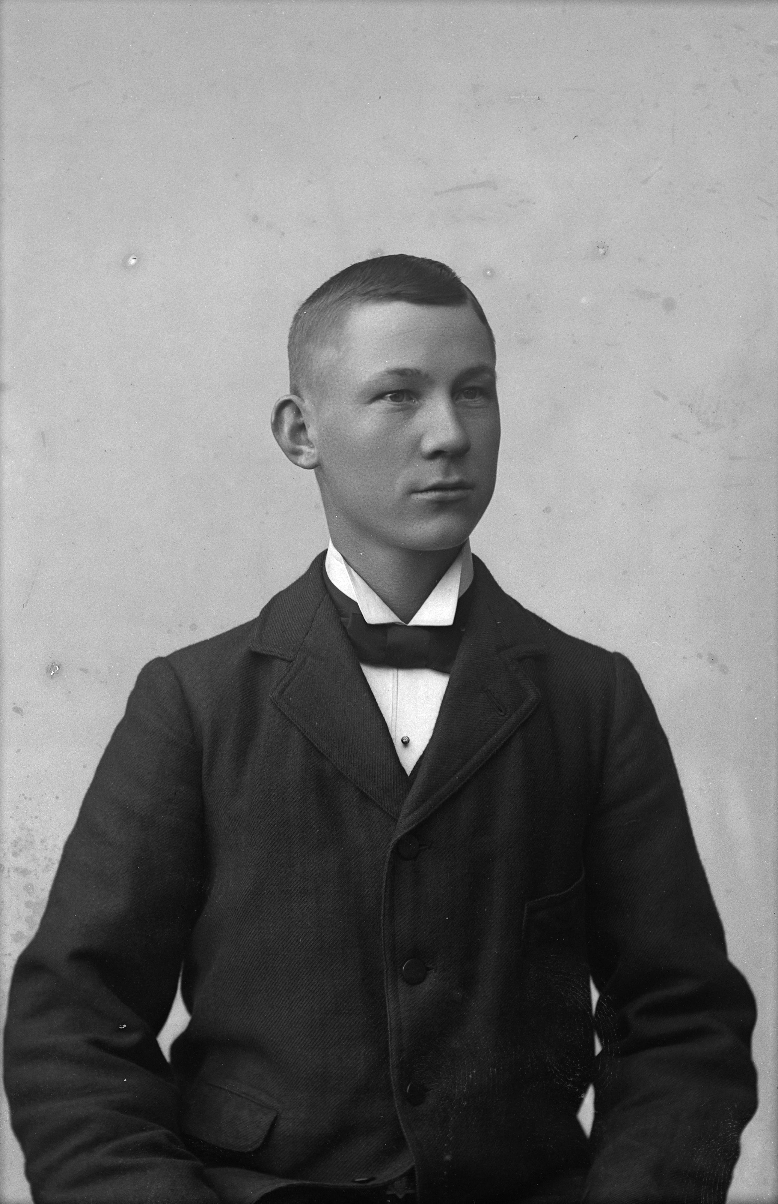 Beskrivning: Porträtt i halvfigur av Albin Lundquist.