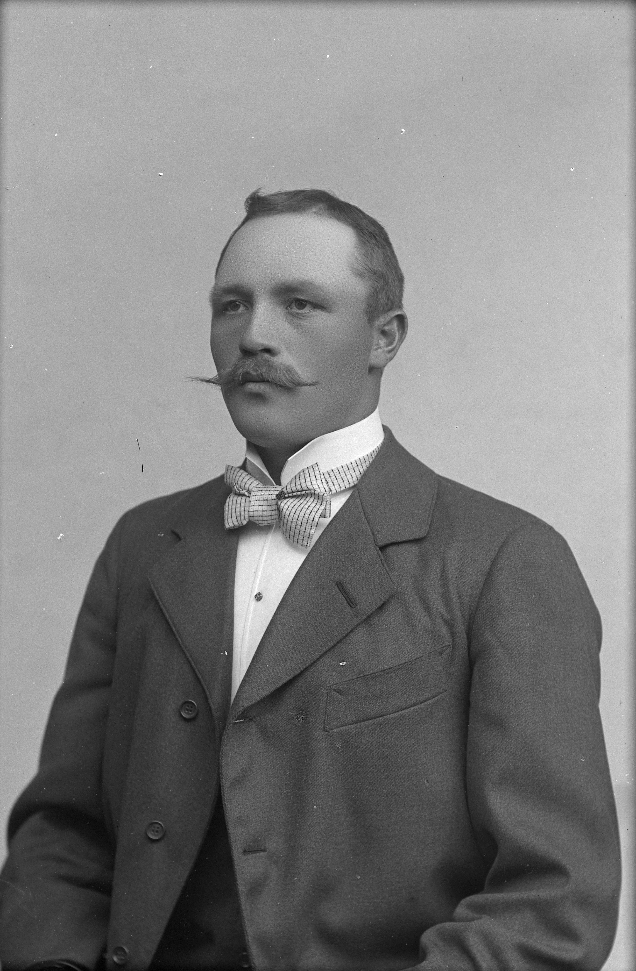 Beskrivning: Porträtt i halvfigur av Elof Henriksson.