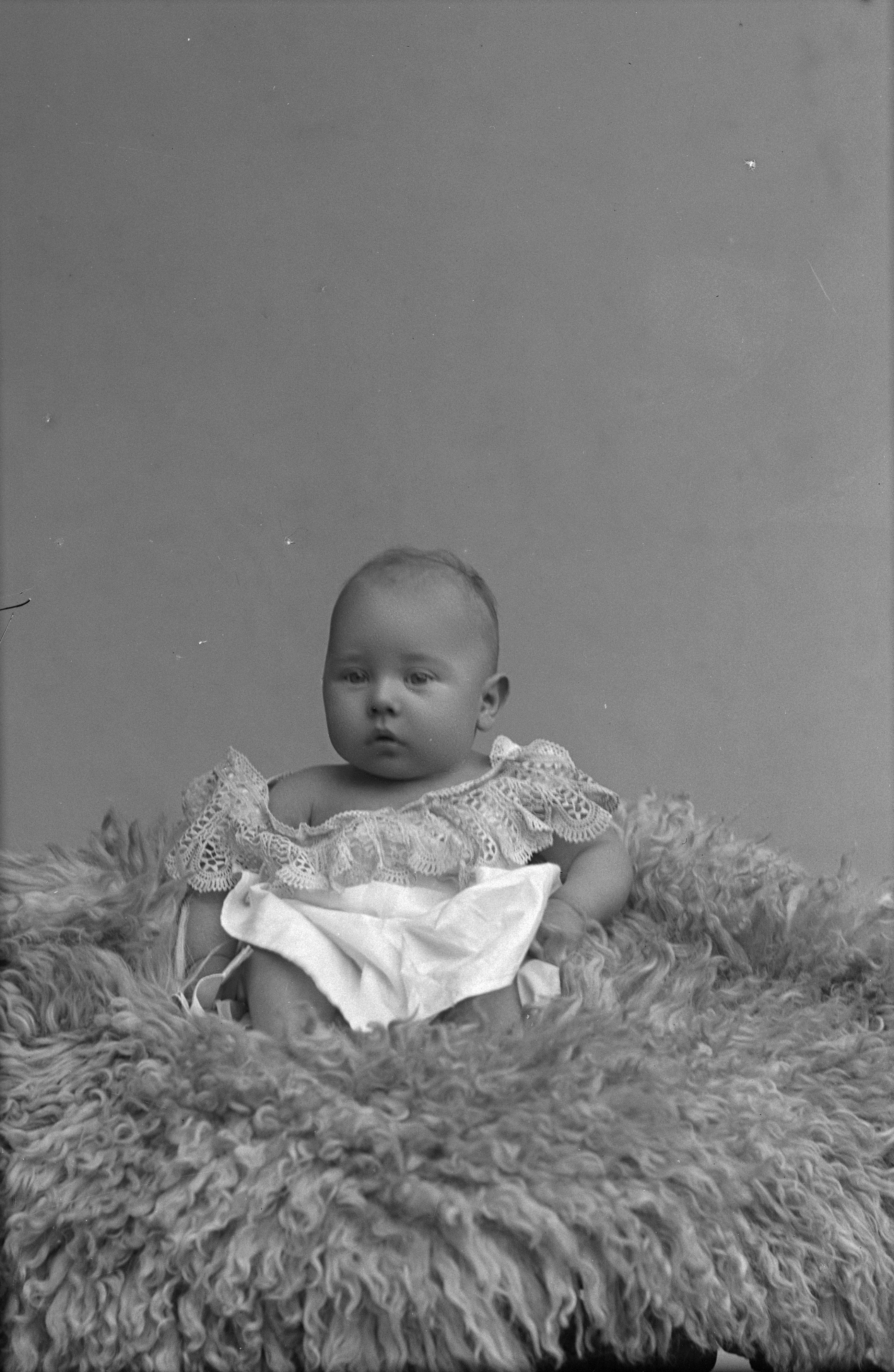 Porträtt i helfigur av Lindéns son, sittande på fäll.