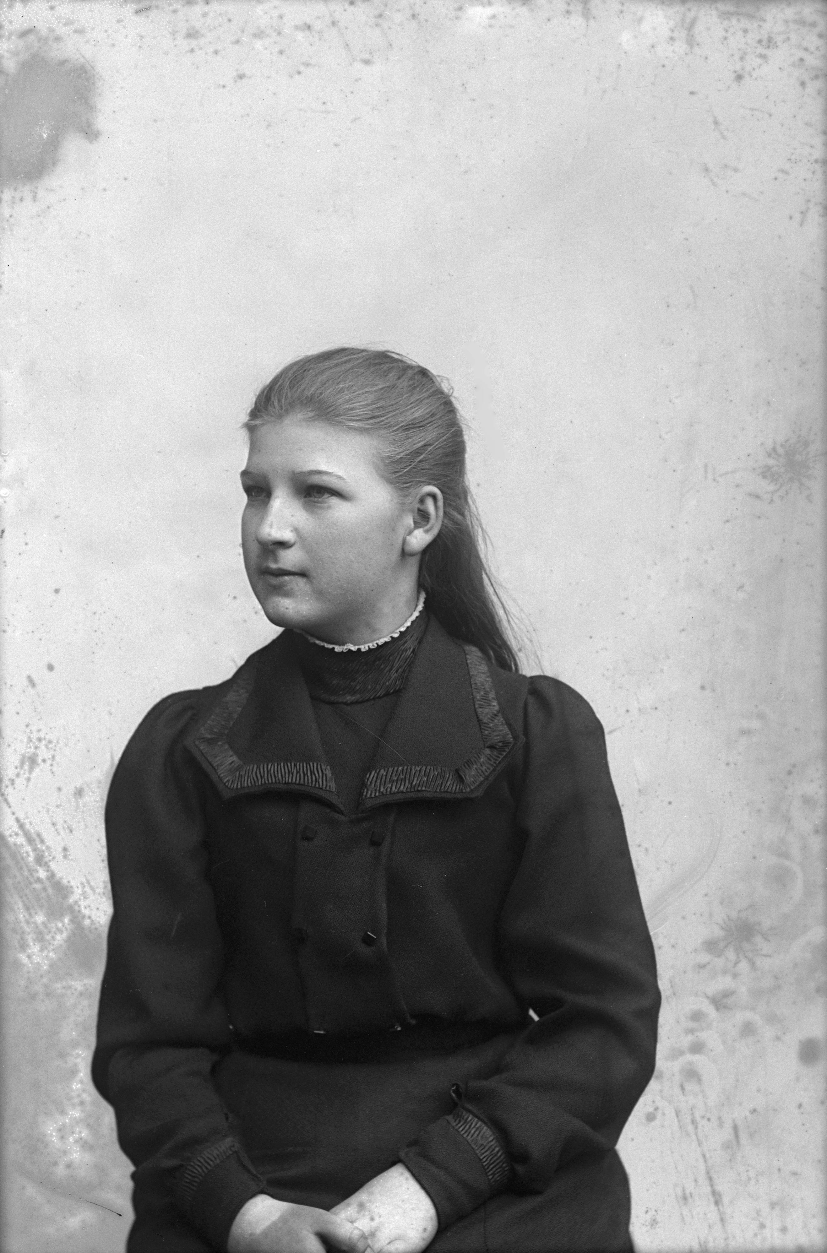 Beskrivning: Porträtt i halvfigur av Halllbäcks dotter.