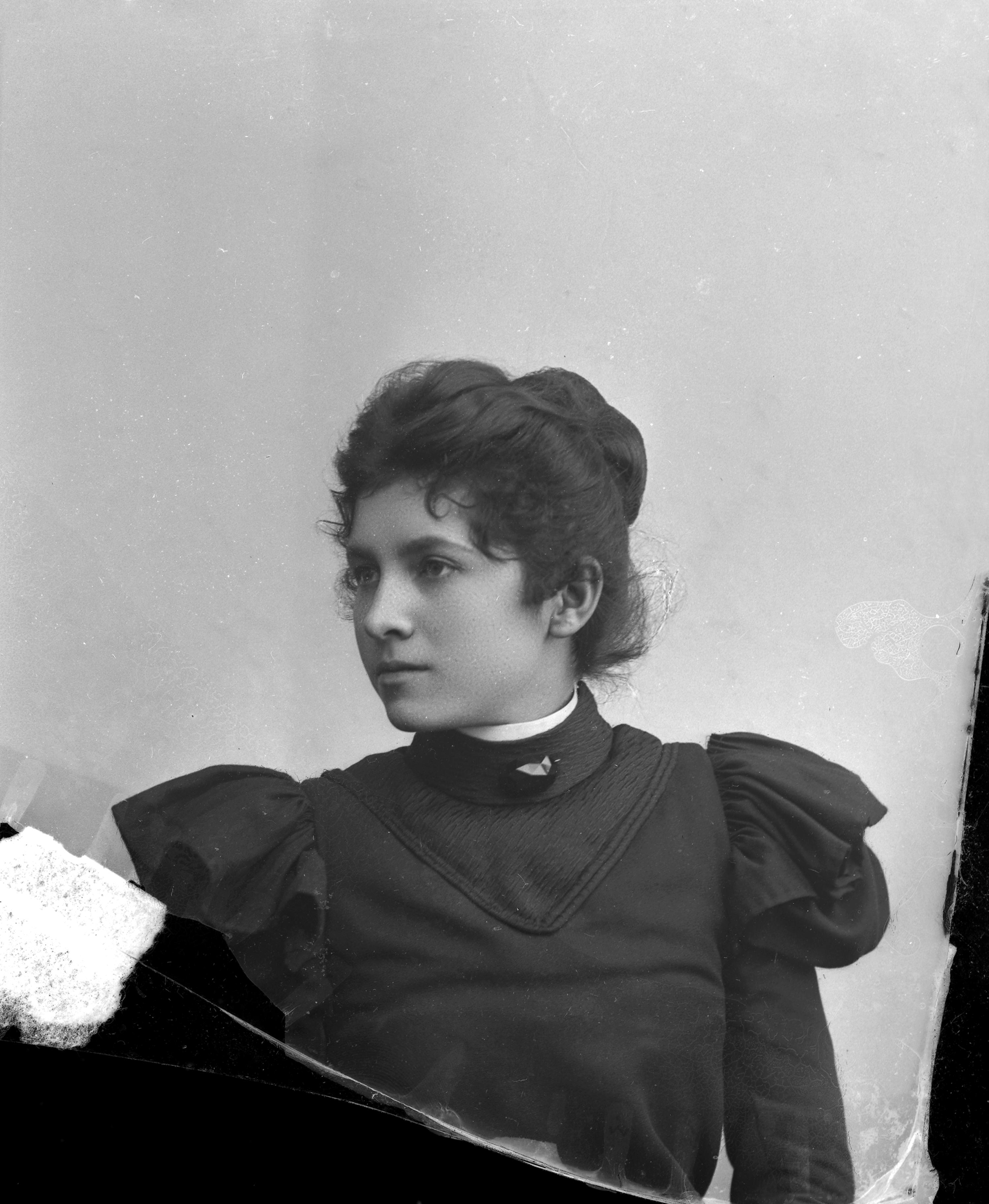 Beskrivning: Porträtt i halvfigur av fröken Mamont.