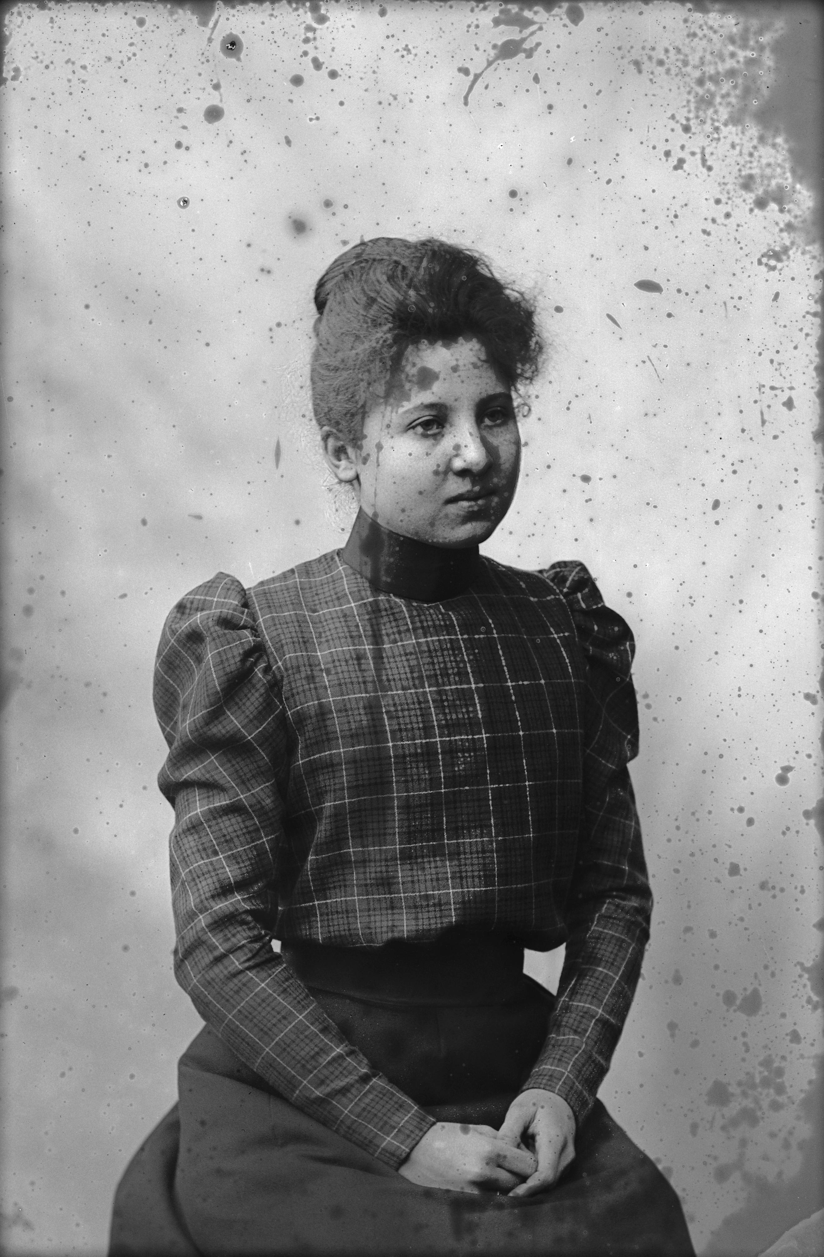Beskrivning: Porträtt i halvfigur av Clara Malmström.
