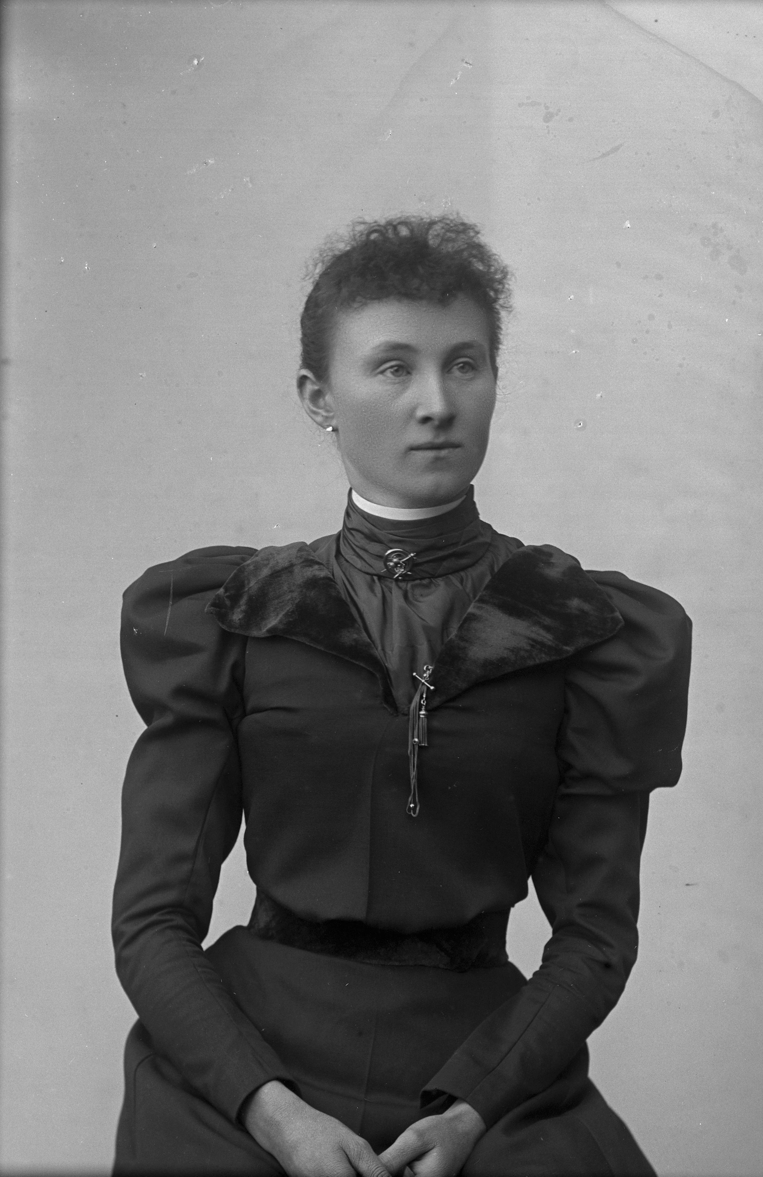 Porträtt i halvfigur av Ester Lindau, fabriksarbeterska.