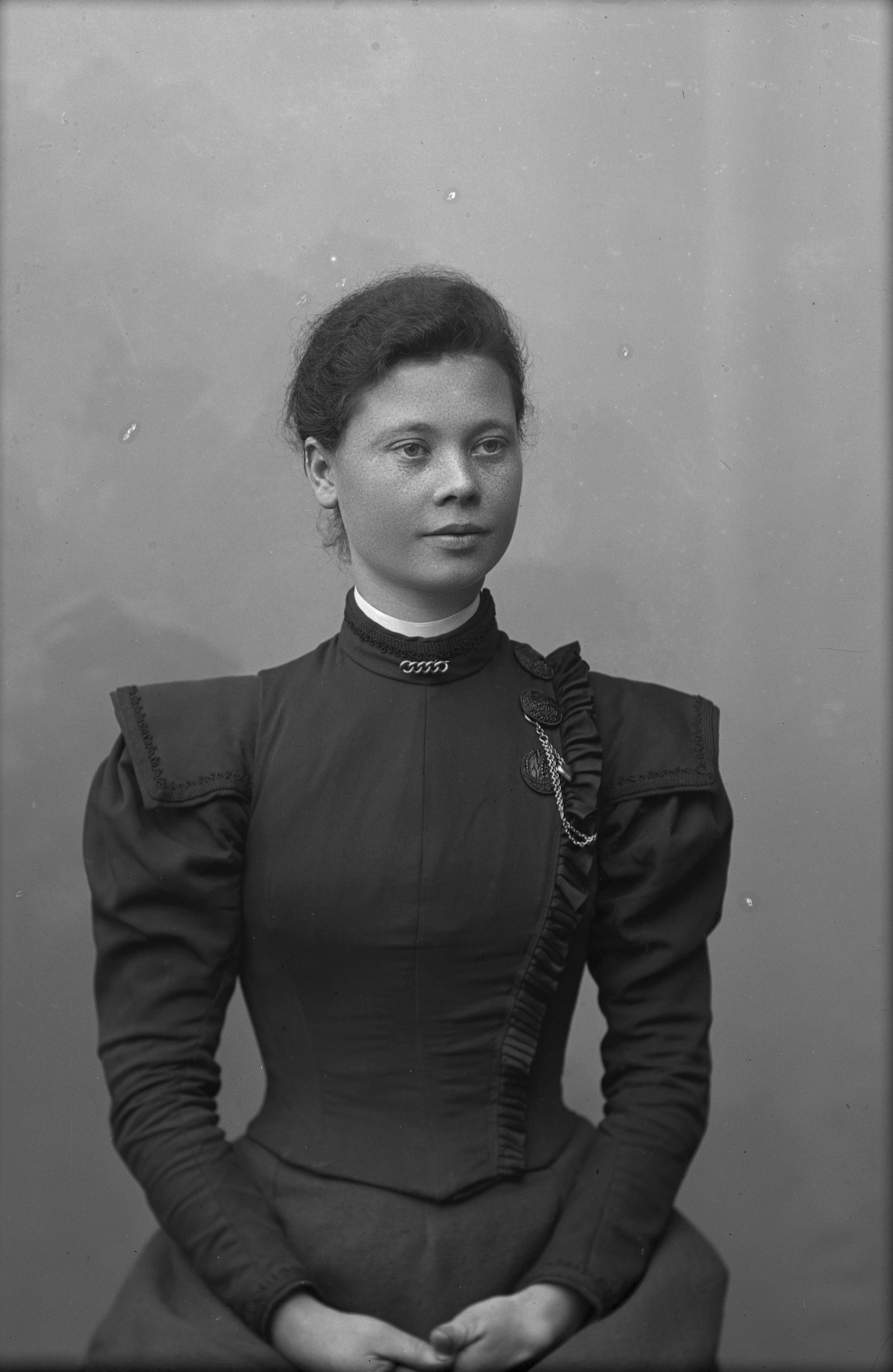 Beskrivning: Porträtt i halvfigur av Hilma Andersson.