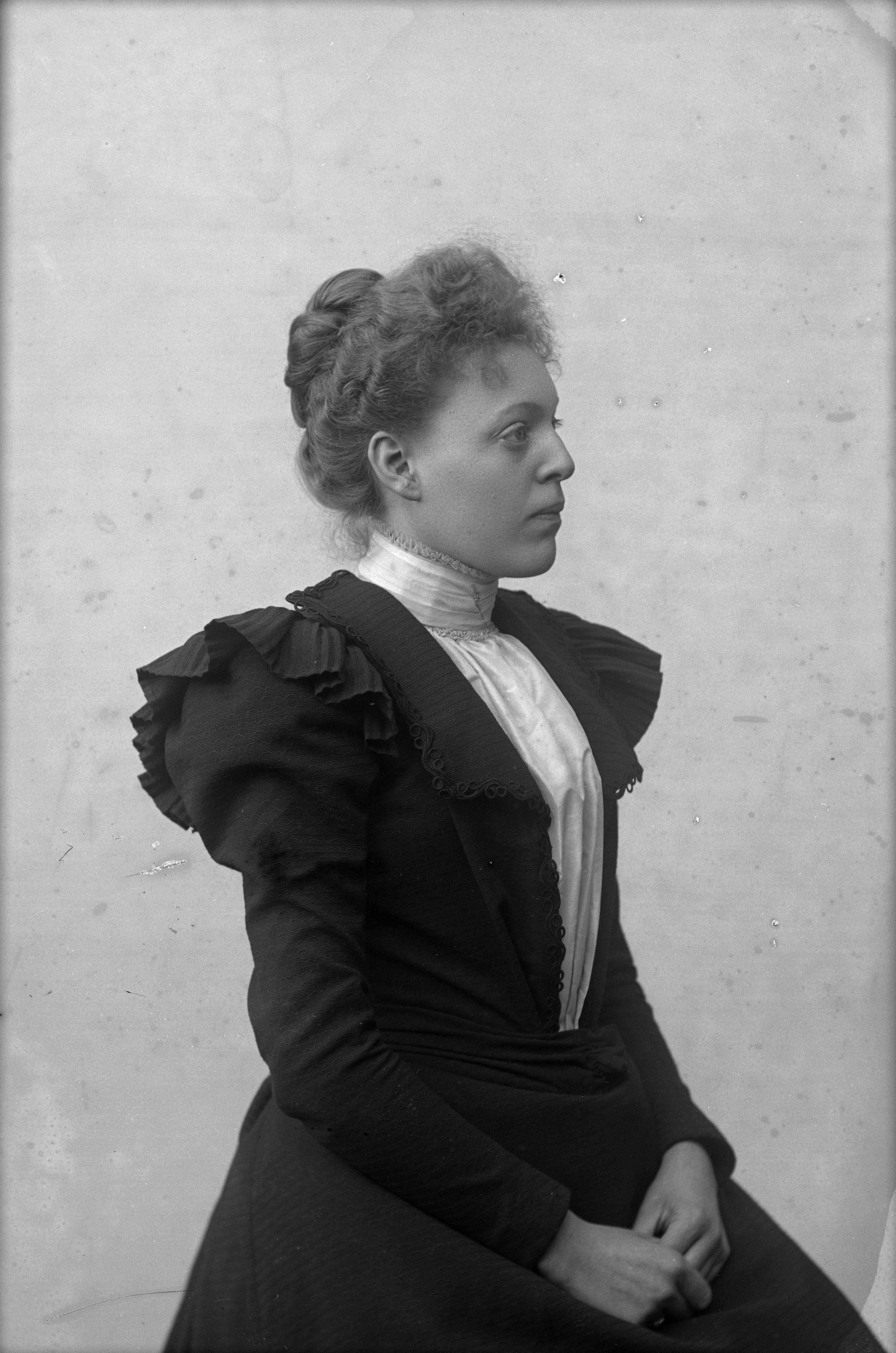 Porträtt i halvfigur, profil, av Hilda Pålsson.