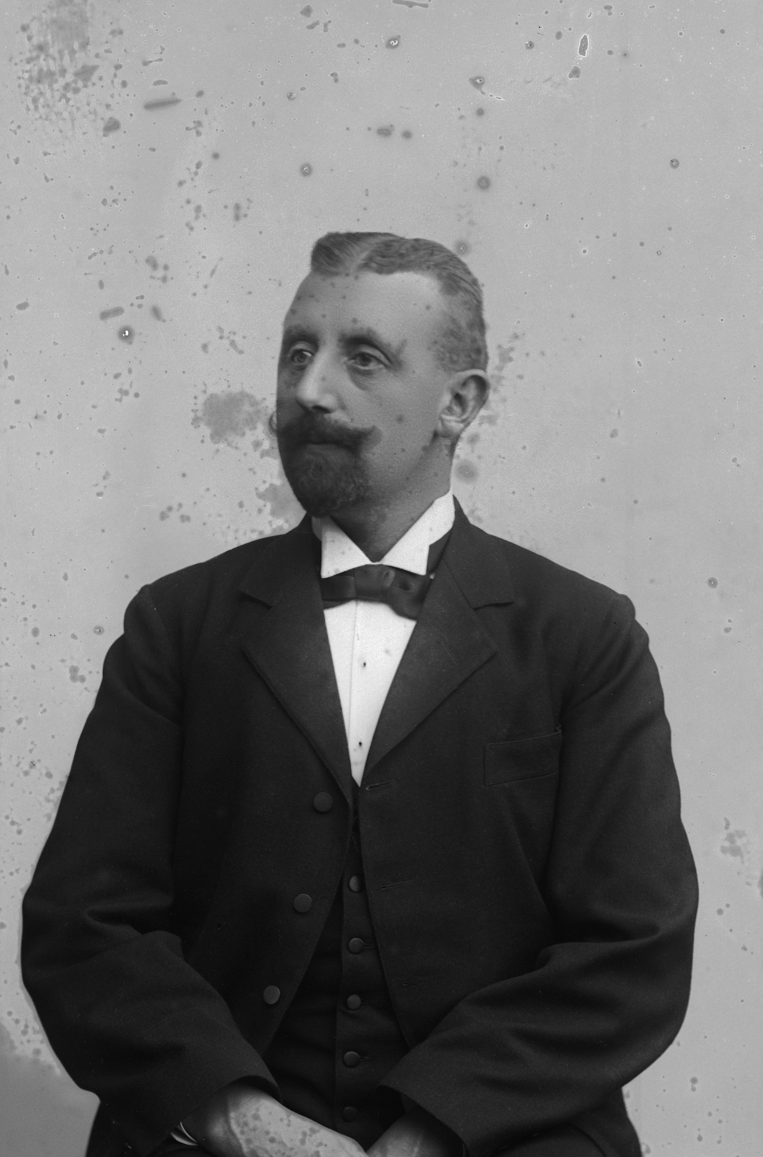 Beskrivning: Porträtt i halvfigur av arrendatorn Nils Persson Wikbom i Östra Grevie.