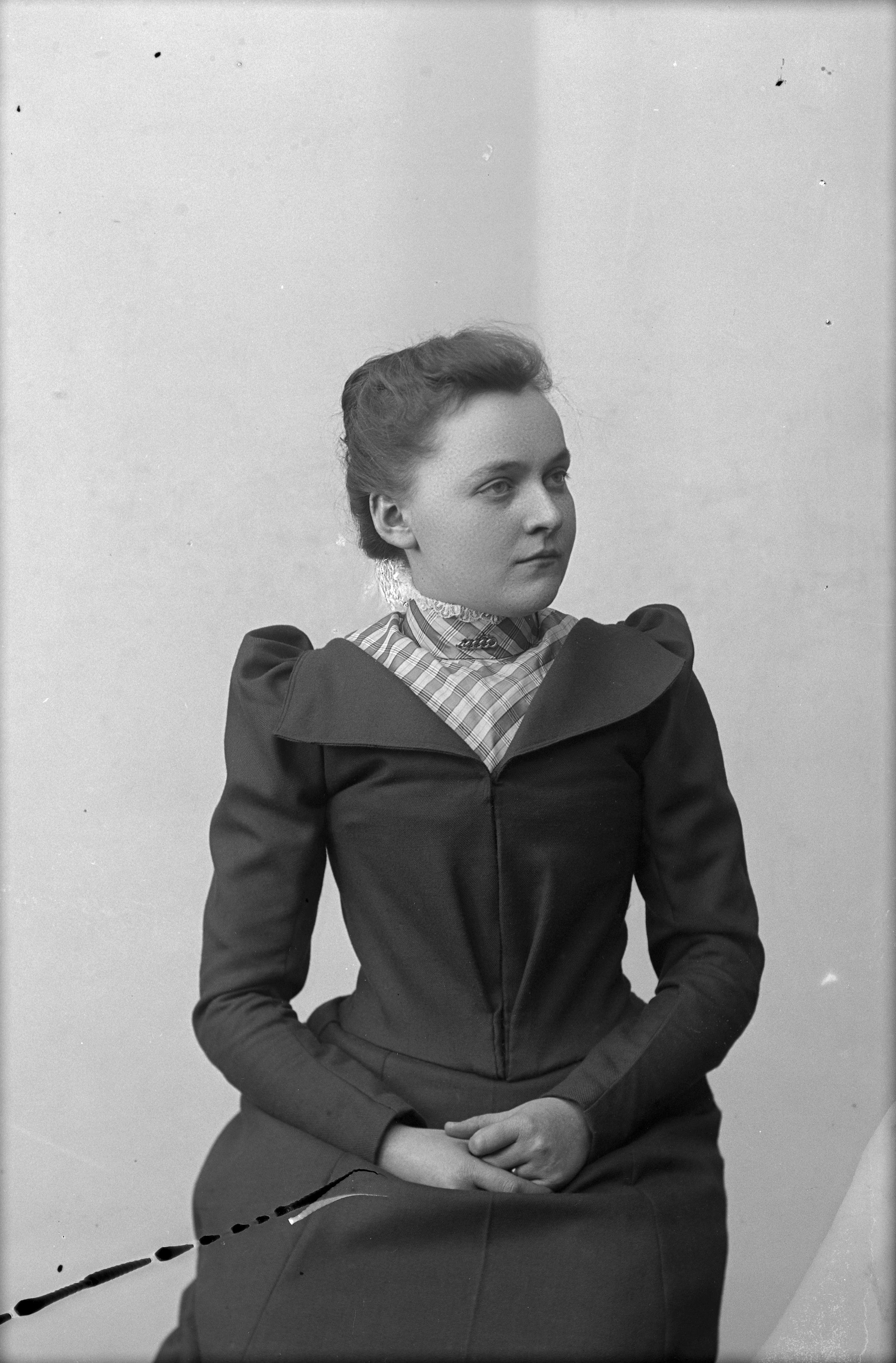 Beskrivning: Porträtt i halvfigur av Ida Rasmusson.