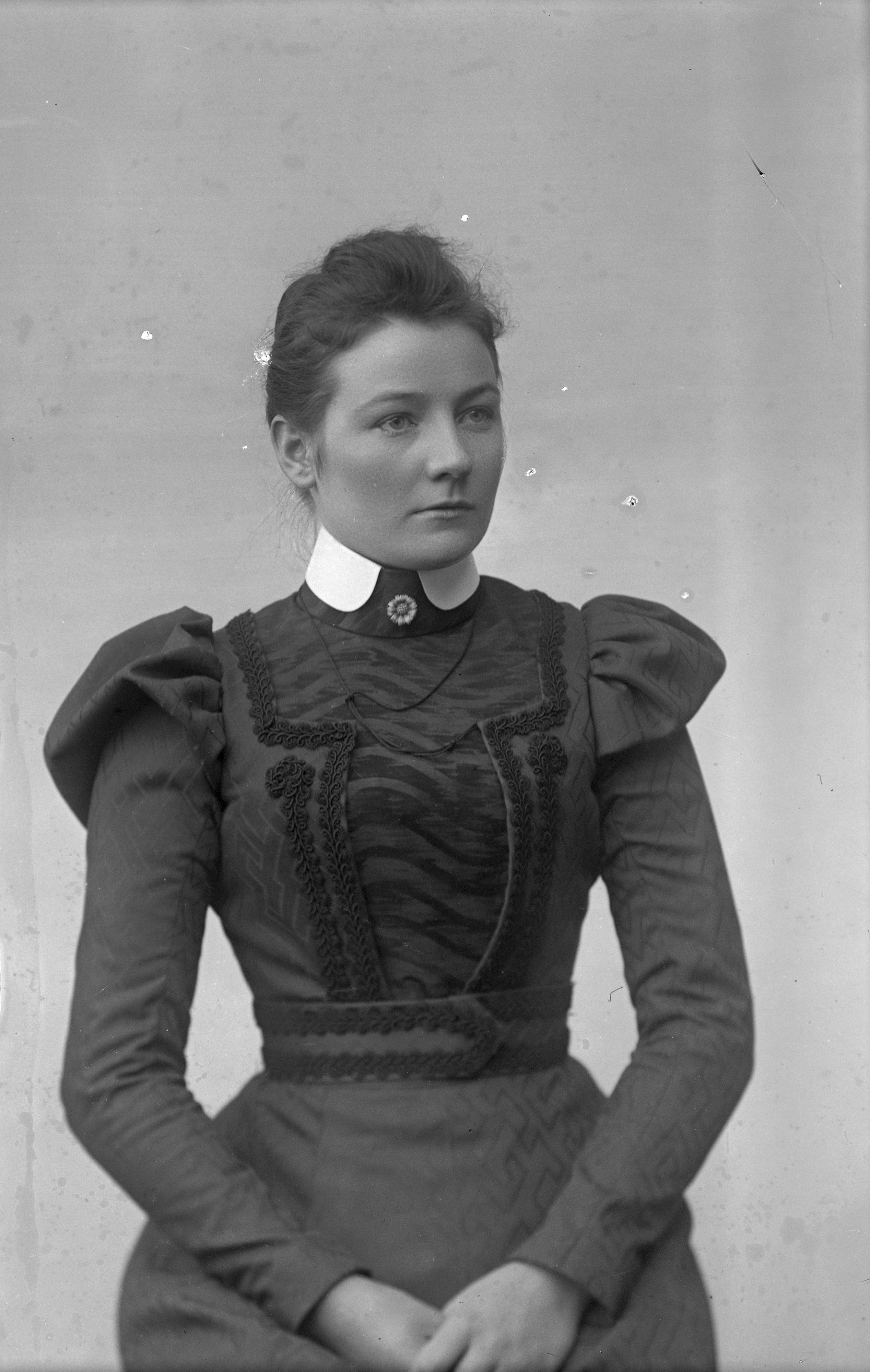 Beskrivning: Porträtt i halvfigur av Maria Palm.