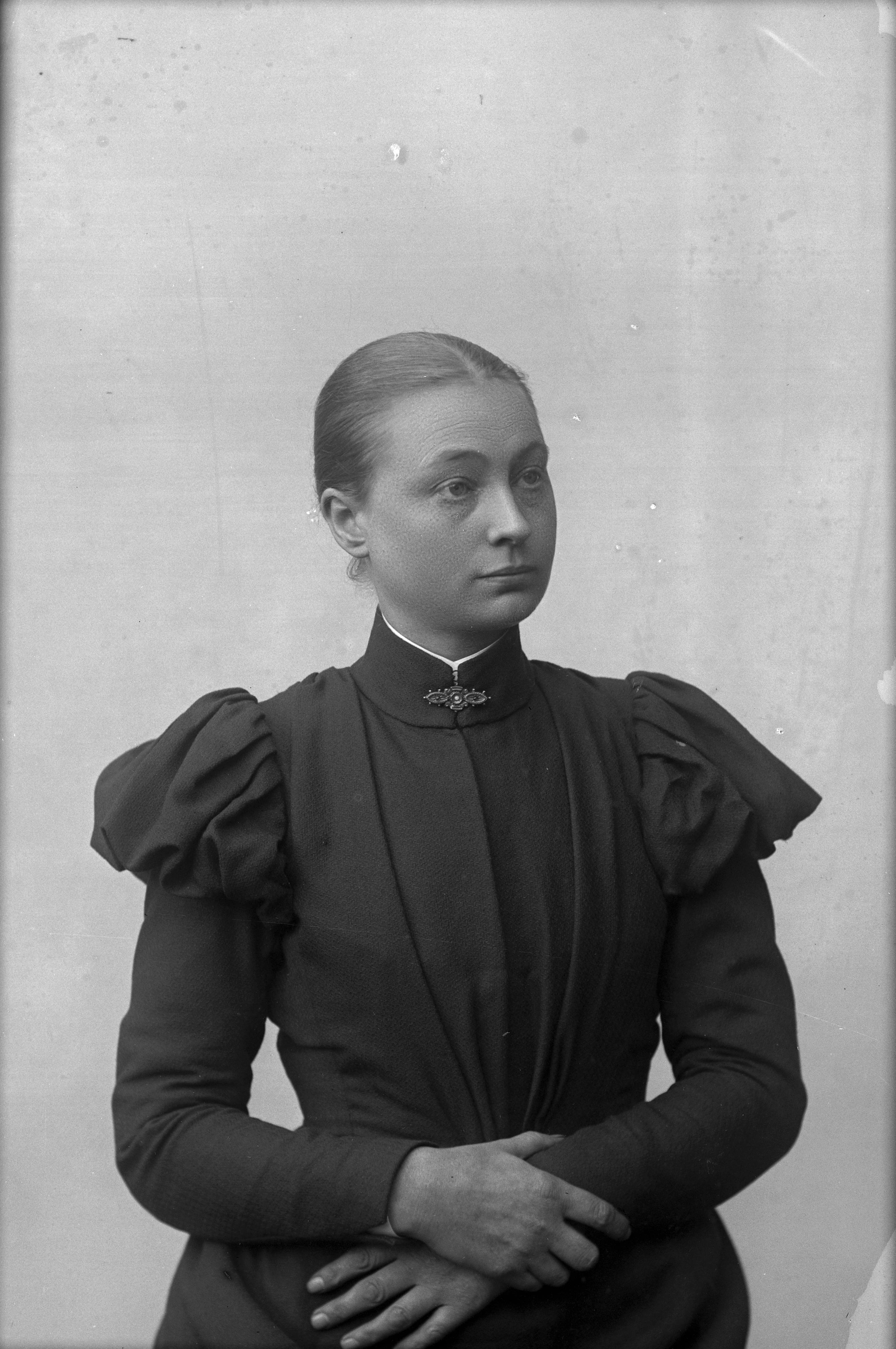 Beskrivning: Porträtt i halvfigur av Bothilda Malmberg.