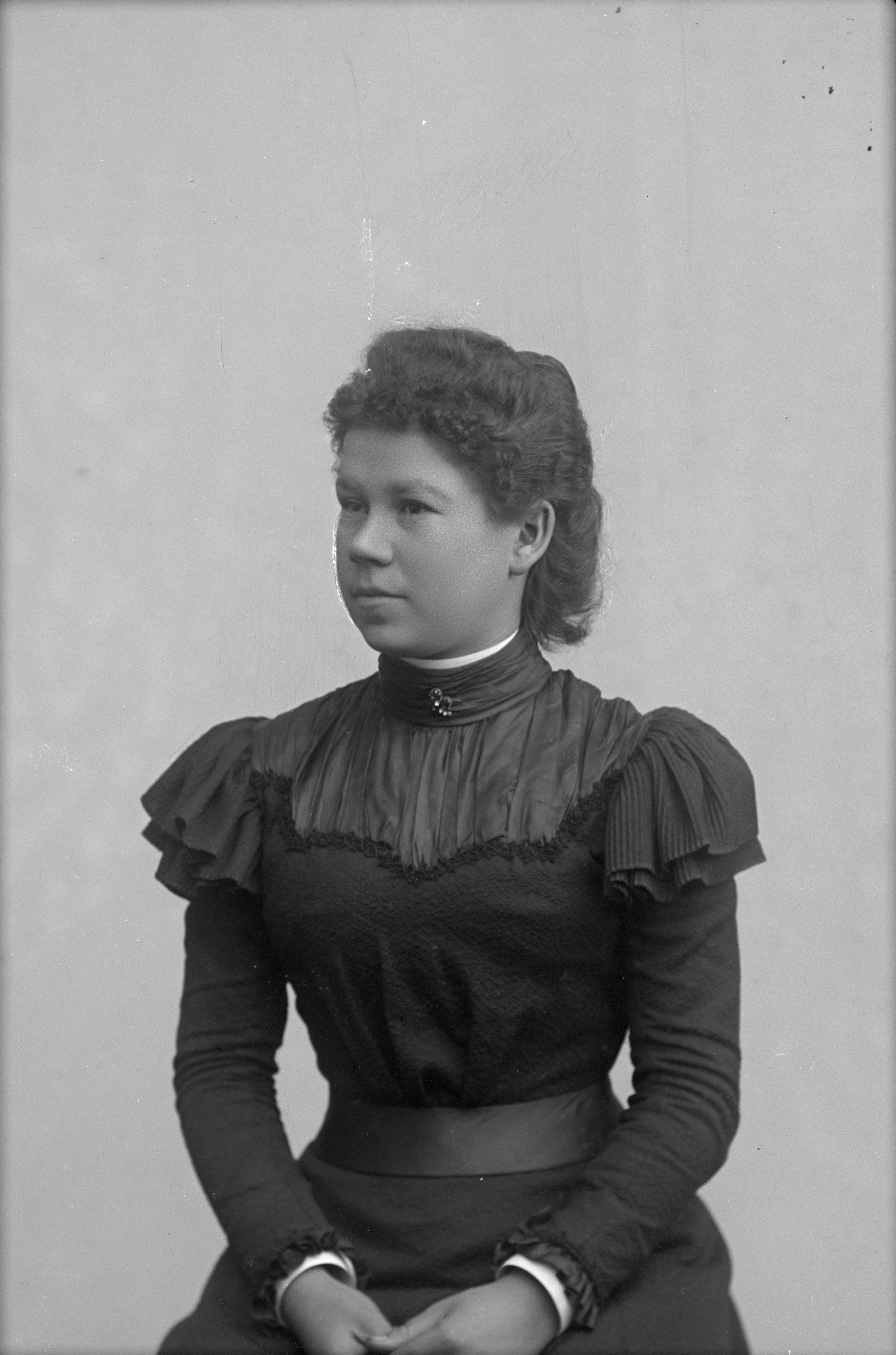 Beskrivning: Porträtt i halvfigur av Maria Bengtsson.