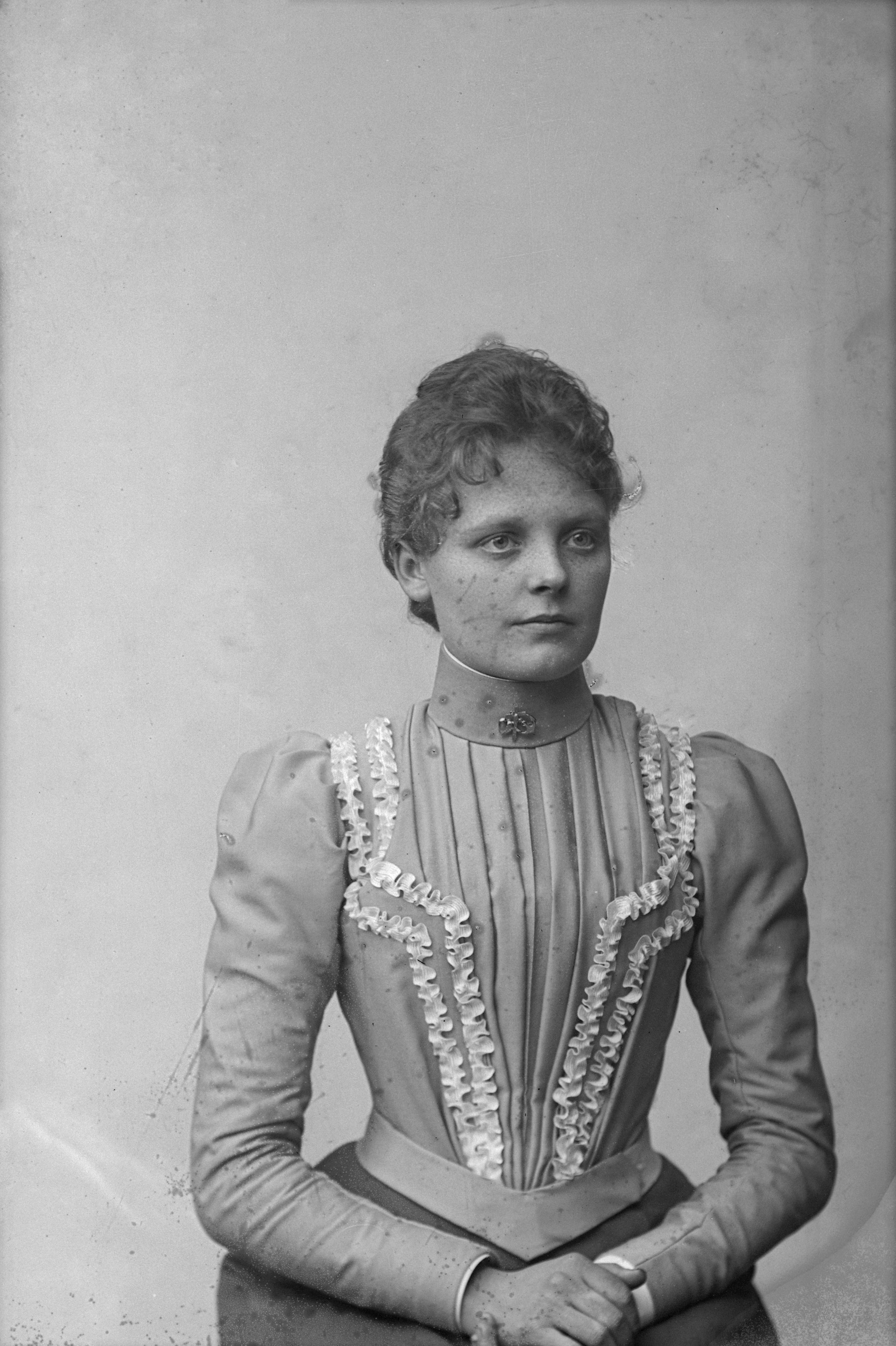 Beskrivning: Porträtt i halvfigur av Betty Bengtsson.