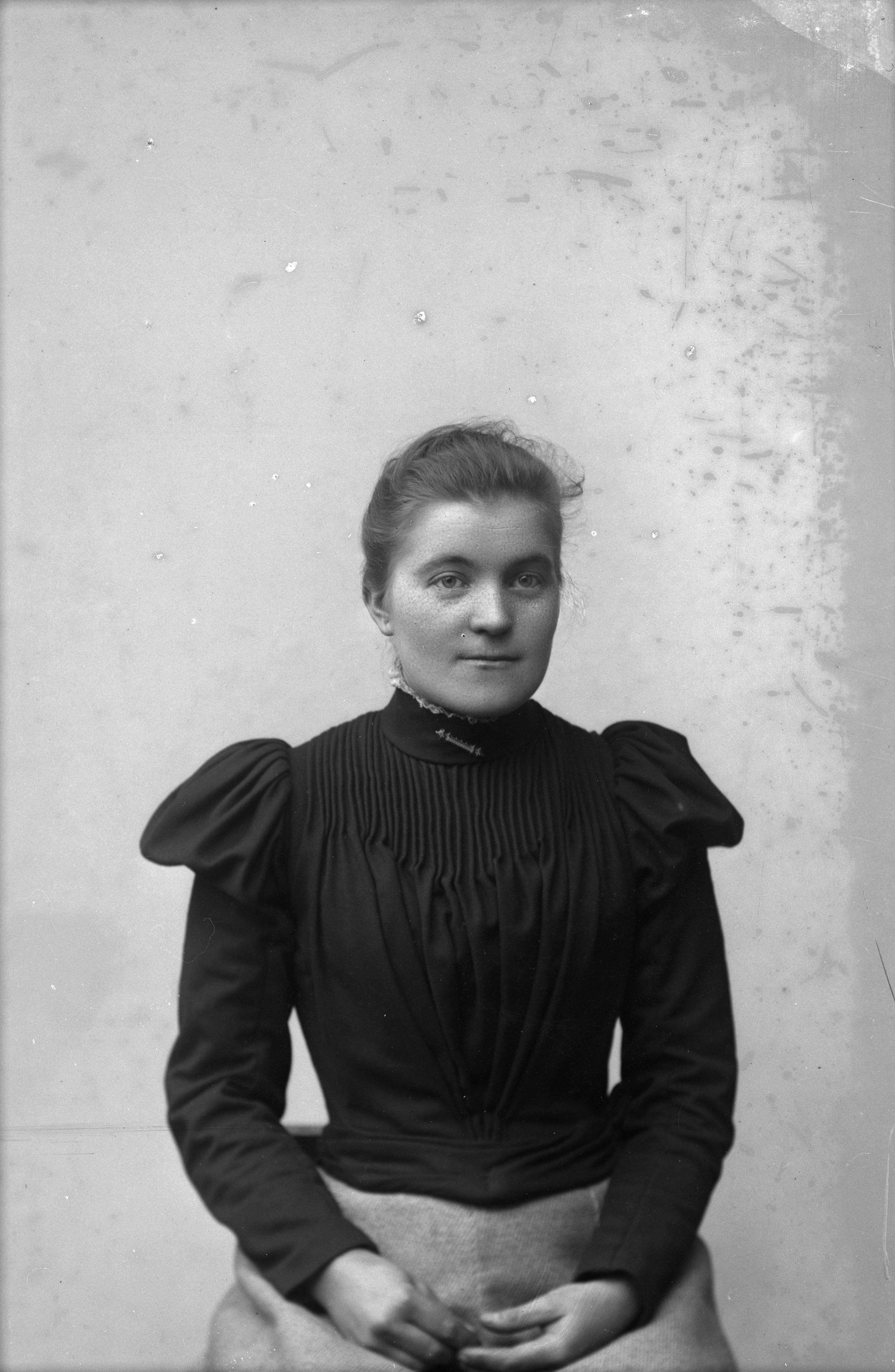Beskrivning: Porträtt i halvfigur av Emilia Larsson.