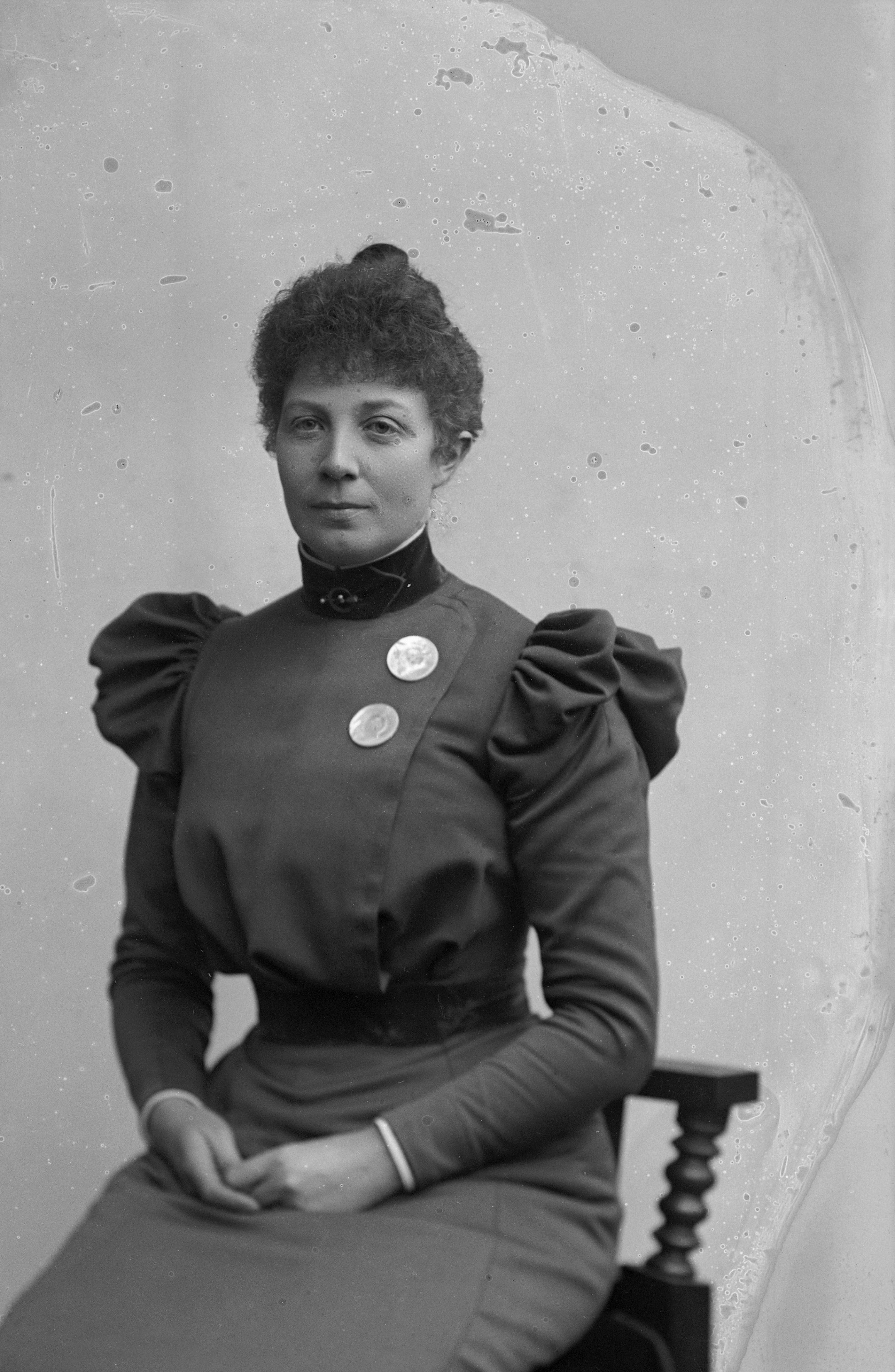 Beskrivning: Porträtt i halvfigur av fru Kull.