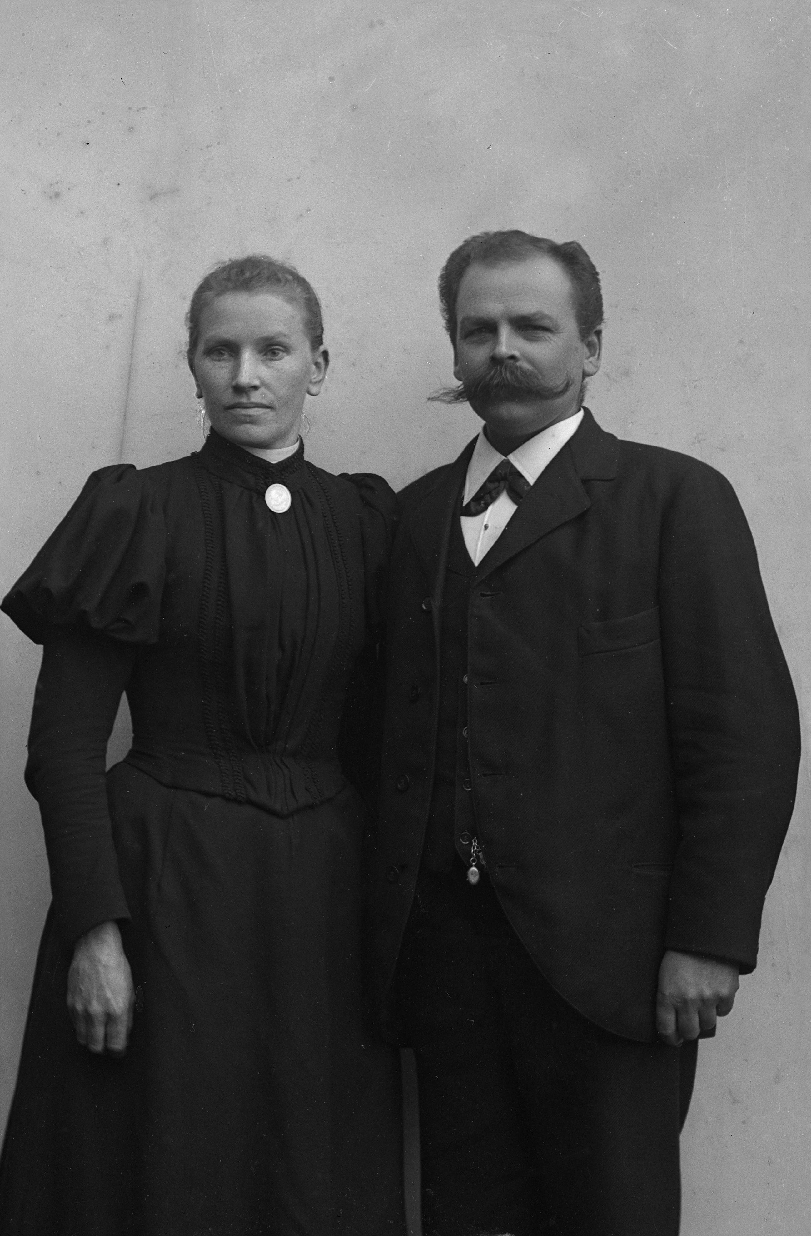 Beskrivning: Porträtt i helfigur N. P. Sjövall med fru.