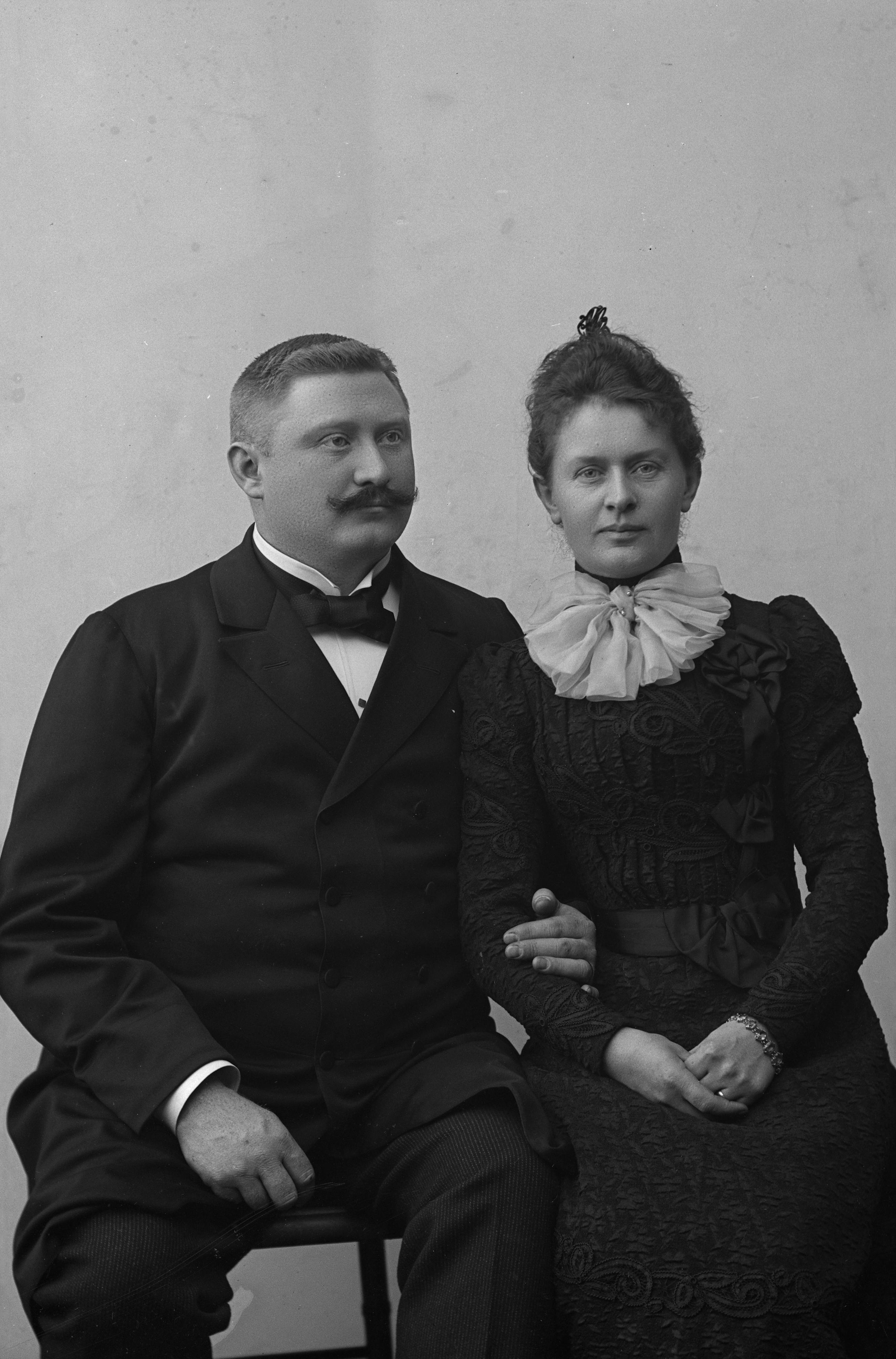 Beskrivning: Porträtt i helfigur av herr Steriffert med fru.