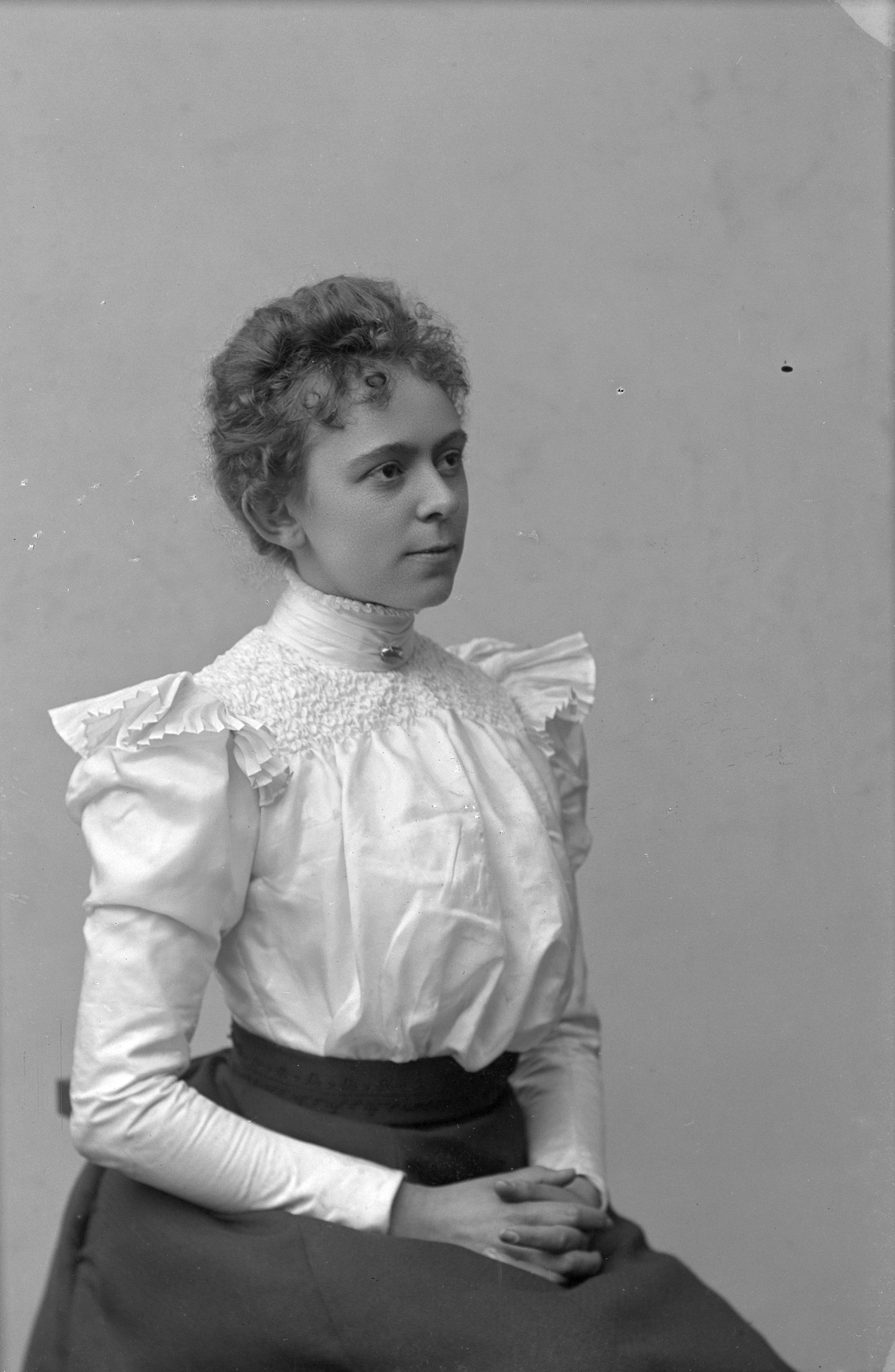Beskrivning: Porträtt i halvfigur av fröken Bergh.