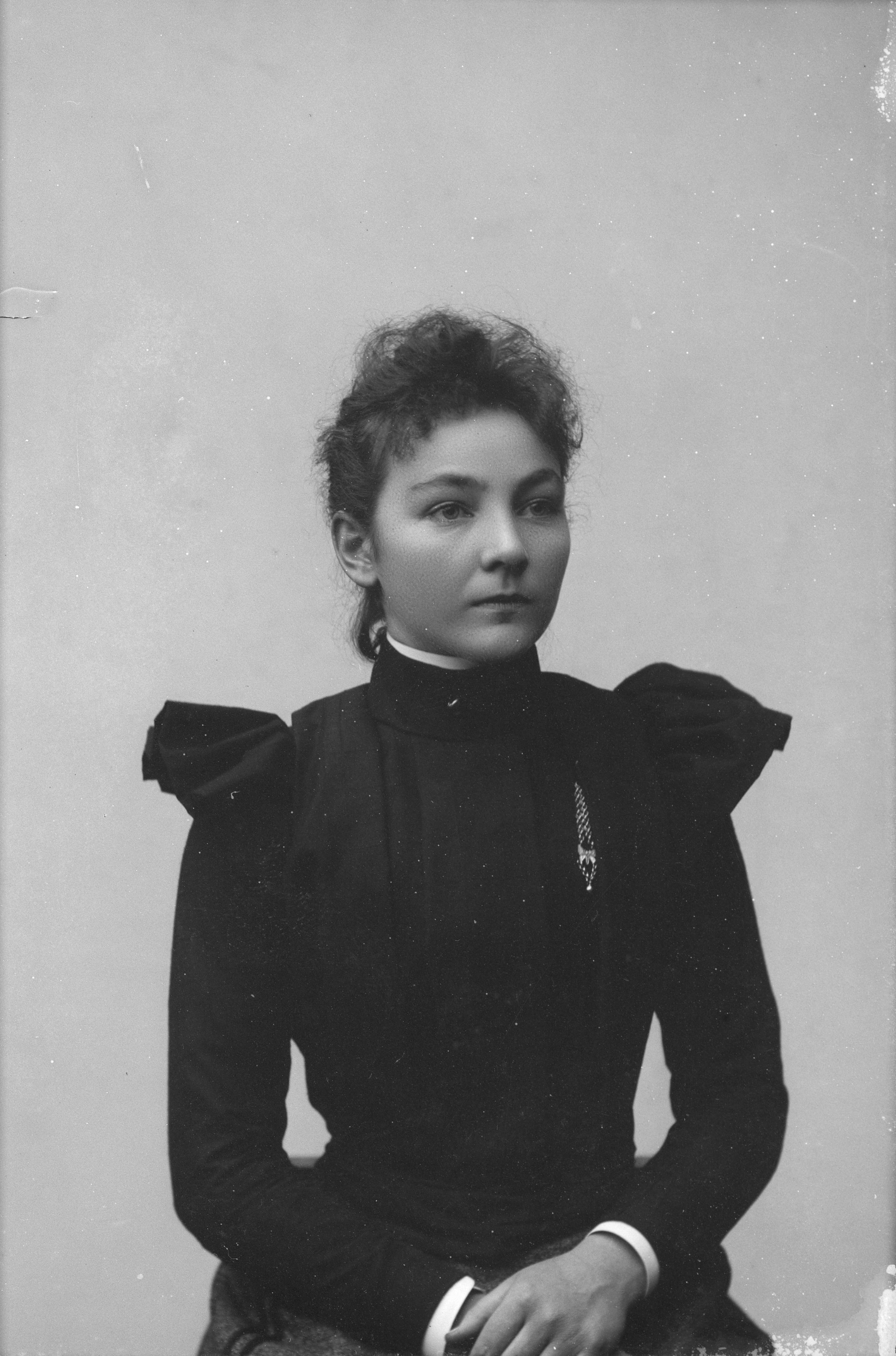 Beskrivning: Porträtt i halvfigur av Anna Palm.