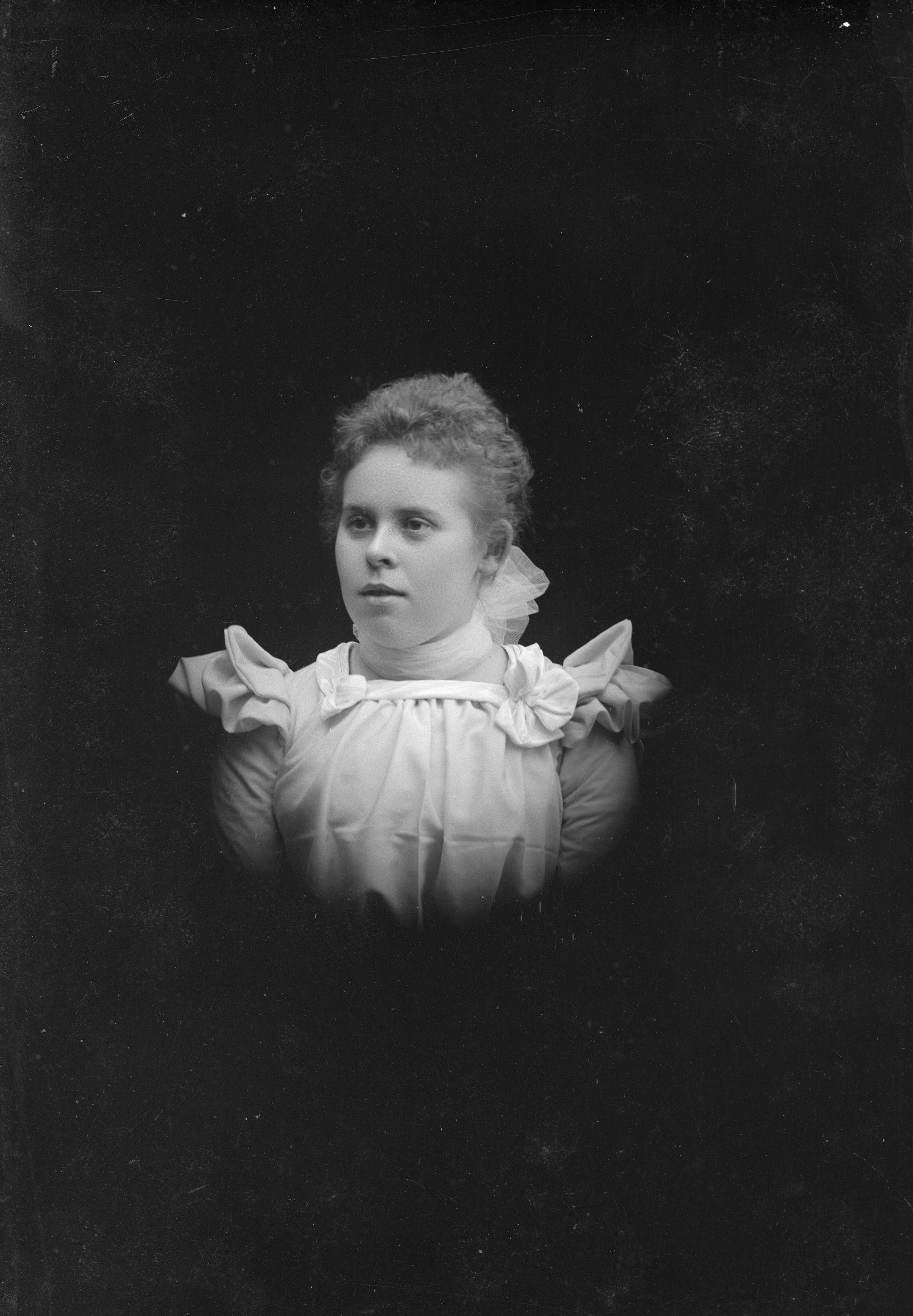 Beskrivning: Porträtt i halvfigur av Ida Vinquist.