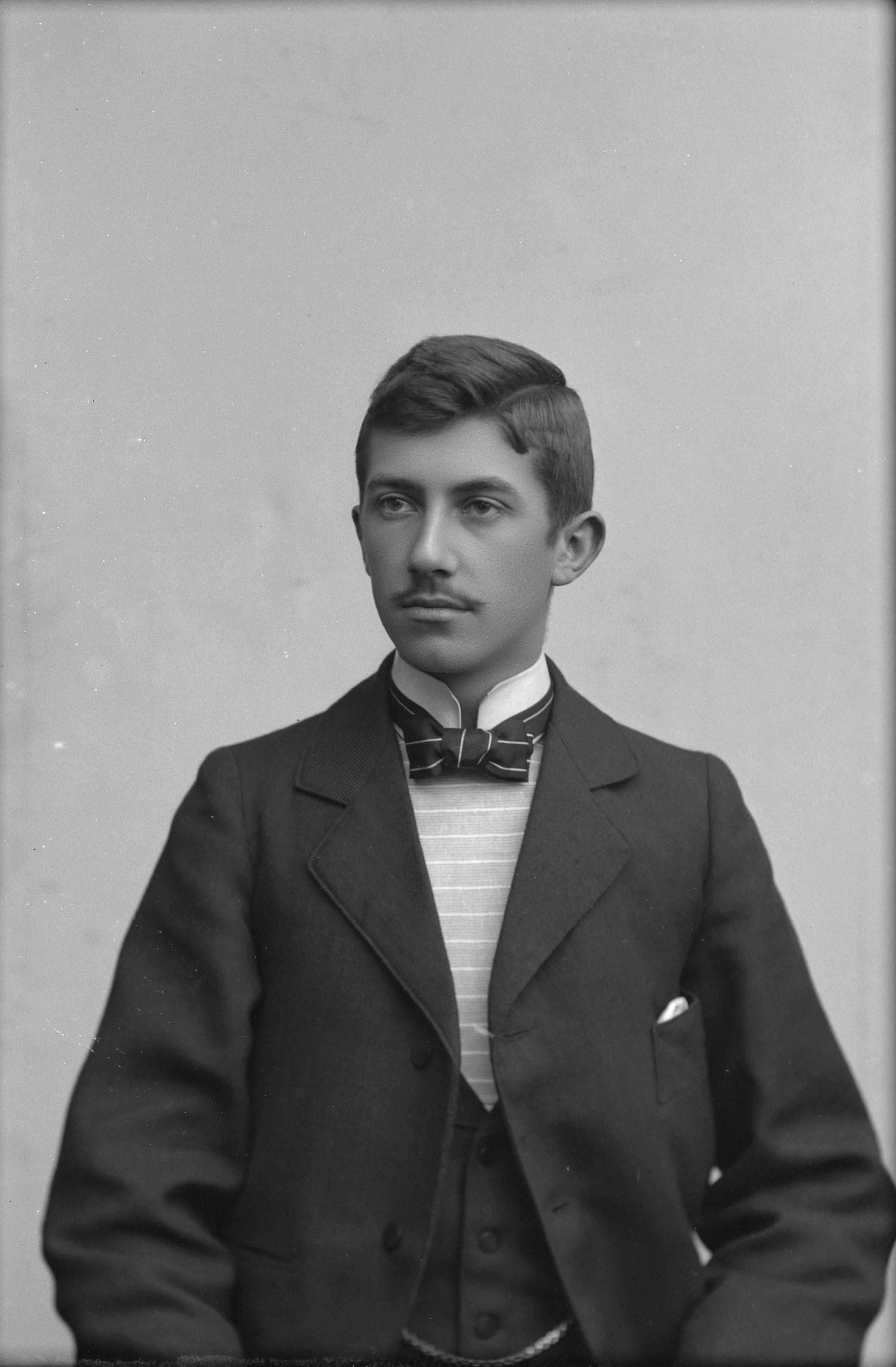 Beskrivning: Porträtt i halvfigur av Oscar Jansson.