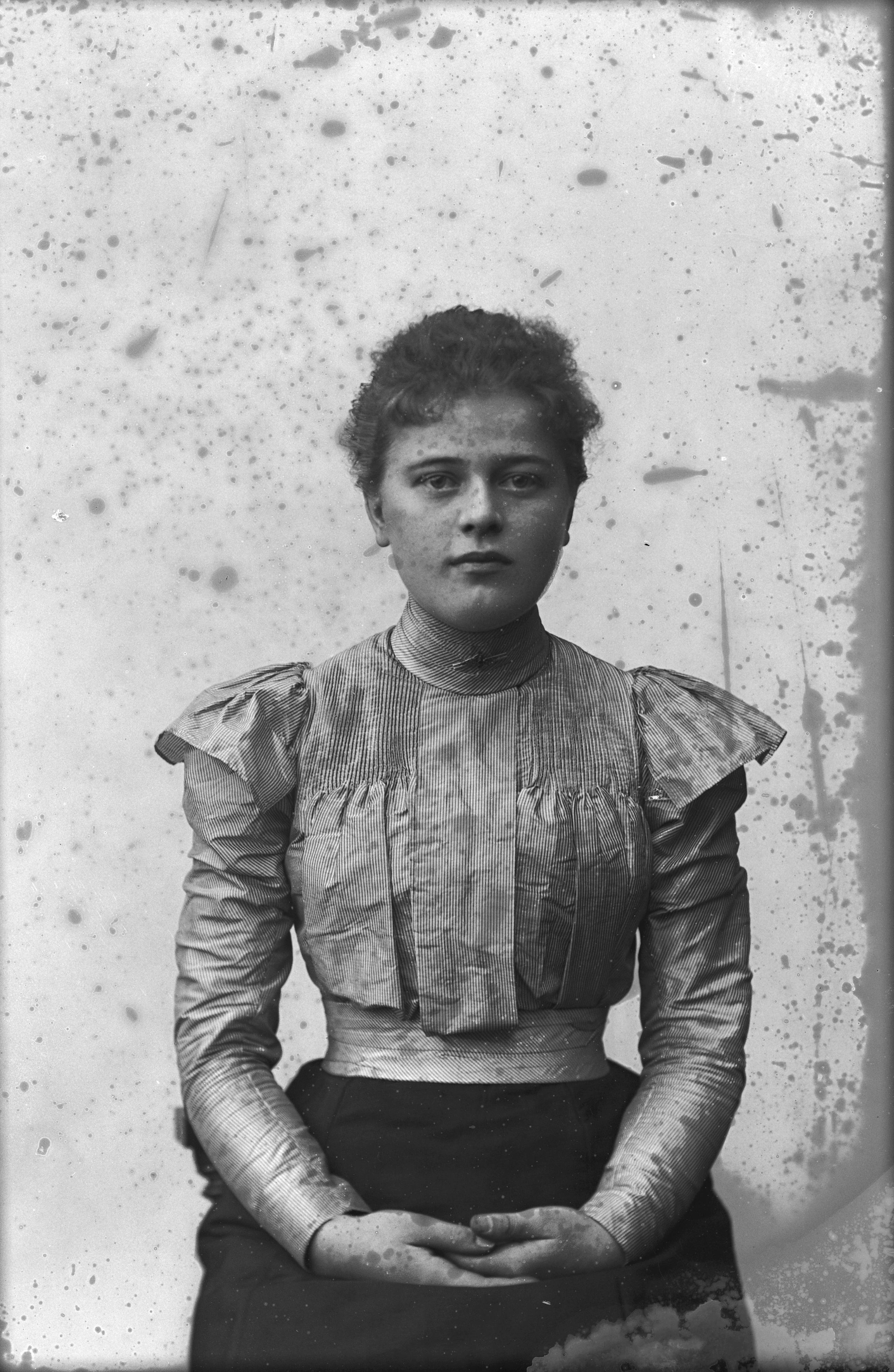 Beskrivning: Porträtt i halvfigur av Anna Mattsson.