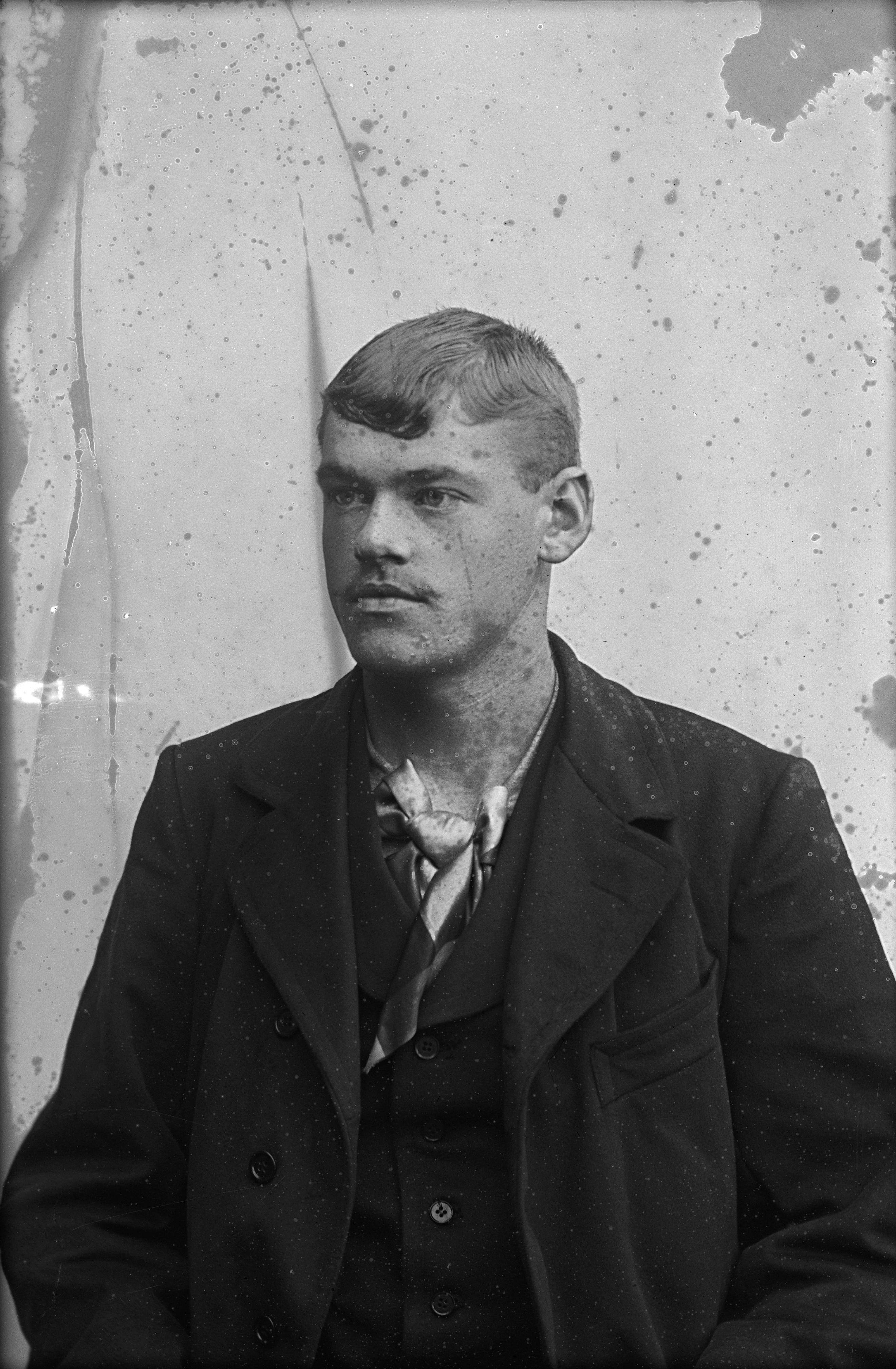 Beskrivning: Porträtt i halvfigur av C. O. Nilsson.