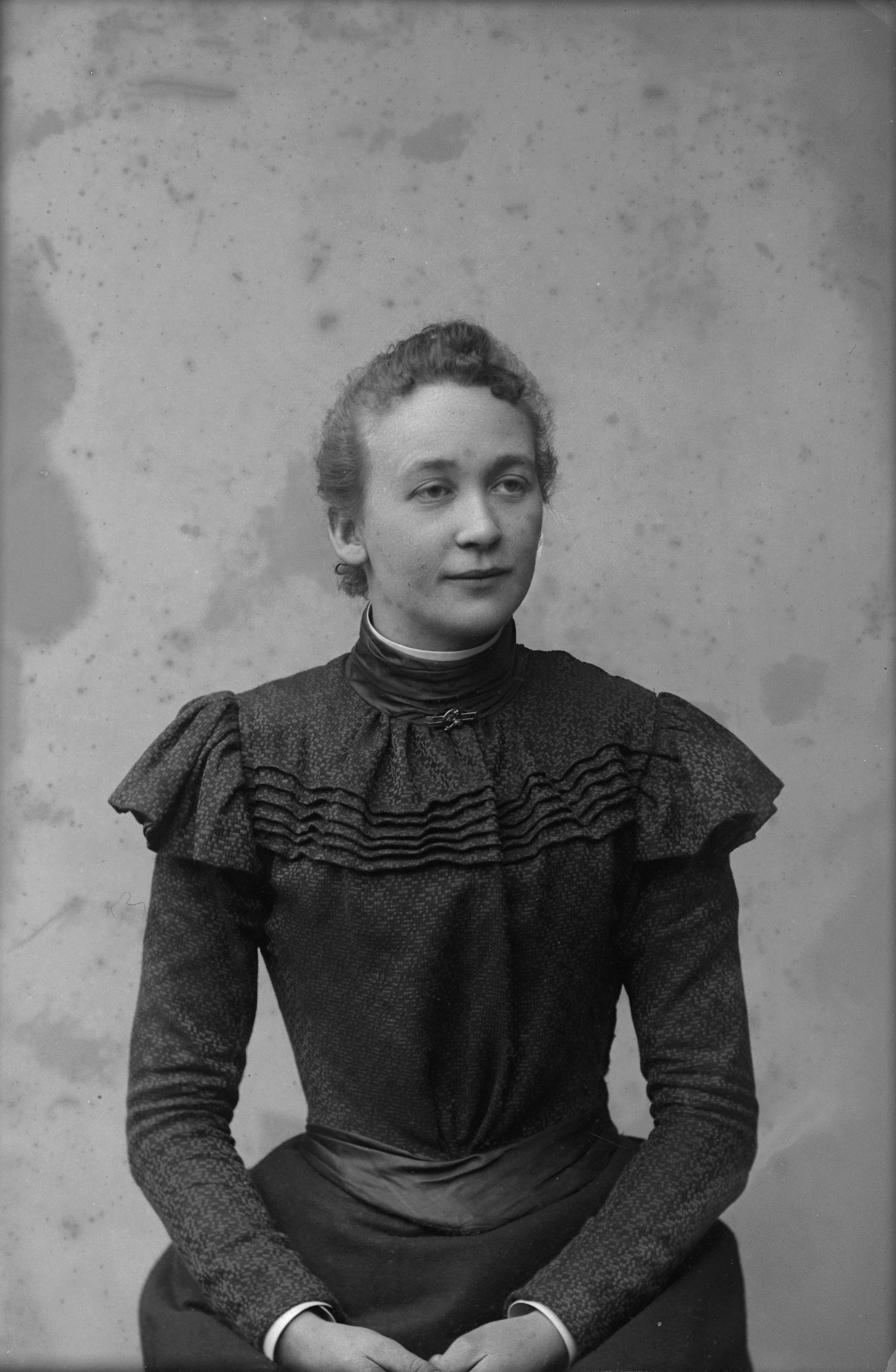 Beskrivning: Porträtt i halvfigur av Selma Andersson.