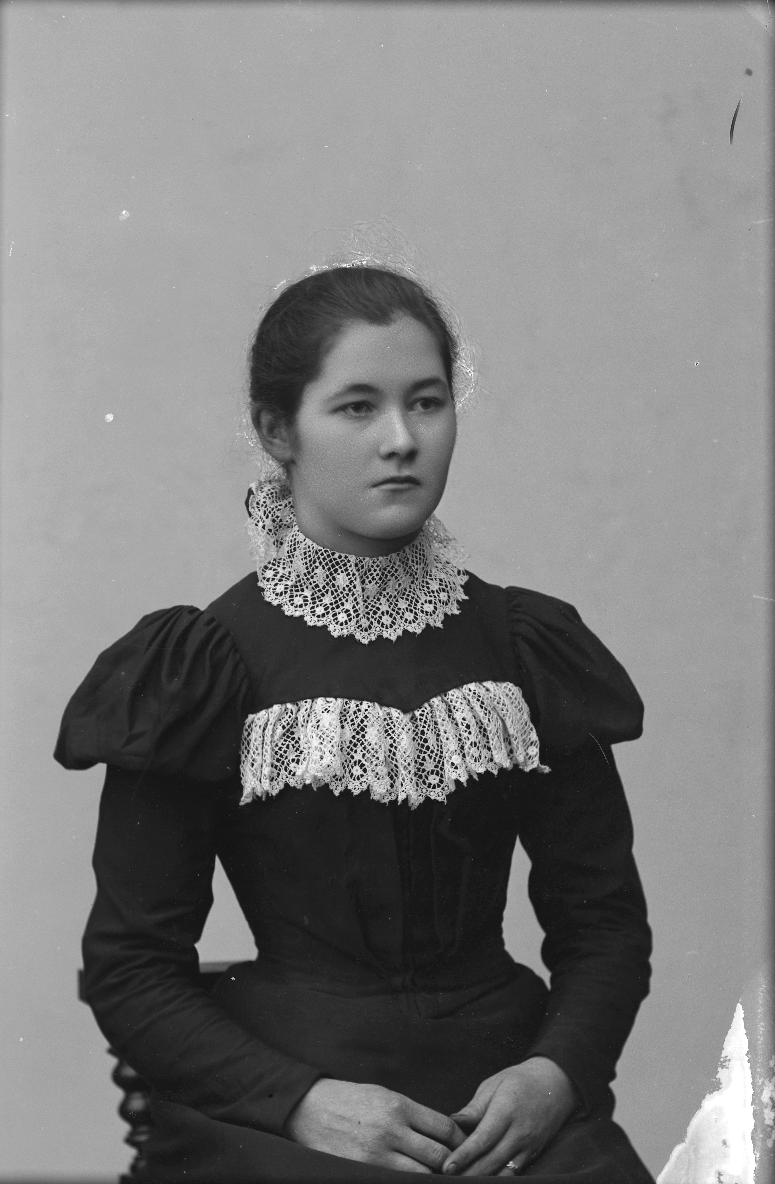 Beskrivning: Porträtt i halvfigur av Ellen Malmros.