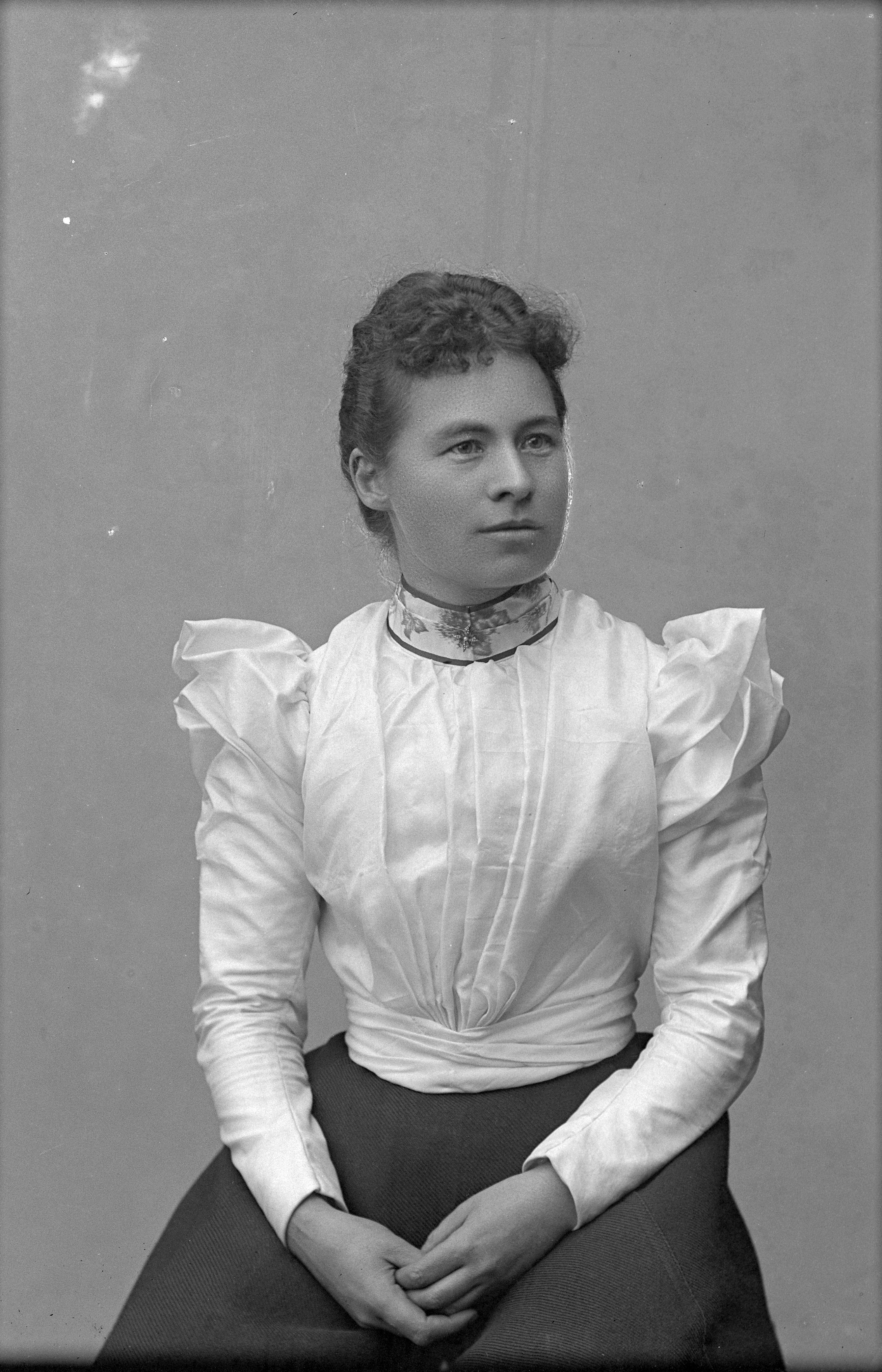 Beskrivning: Porträtt i halvfigur av Anna Lindgren.