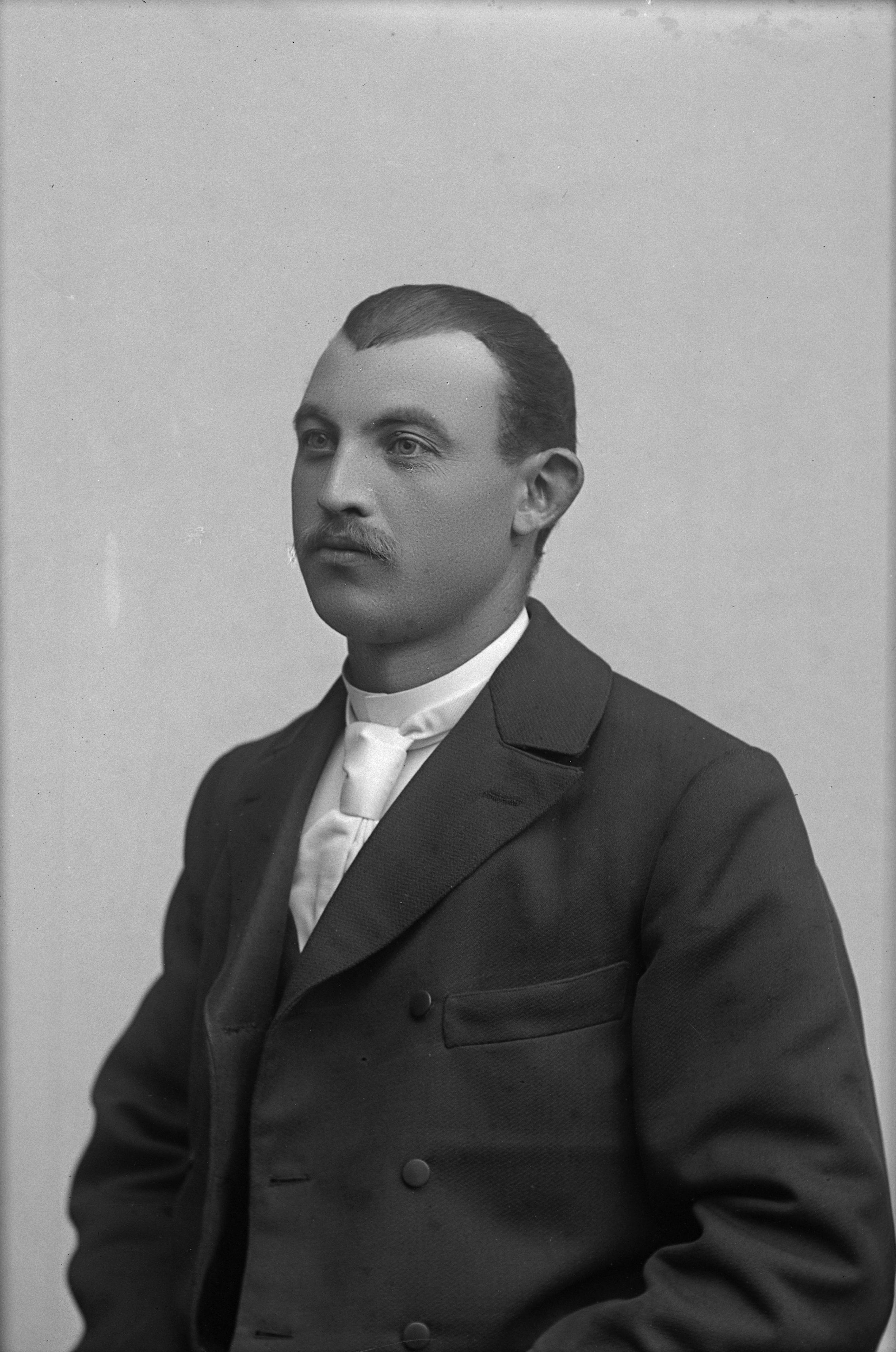 Beskrivning: Porträtt i halvfigur av N. P. Nilsson.