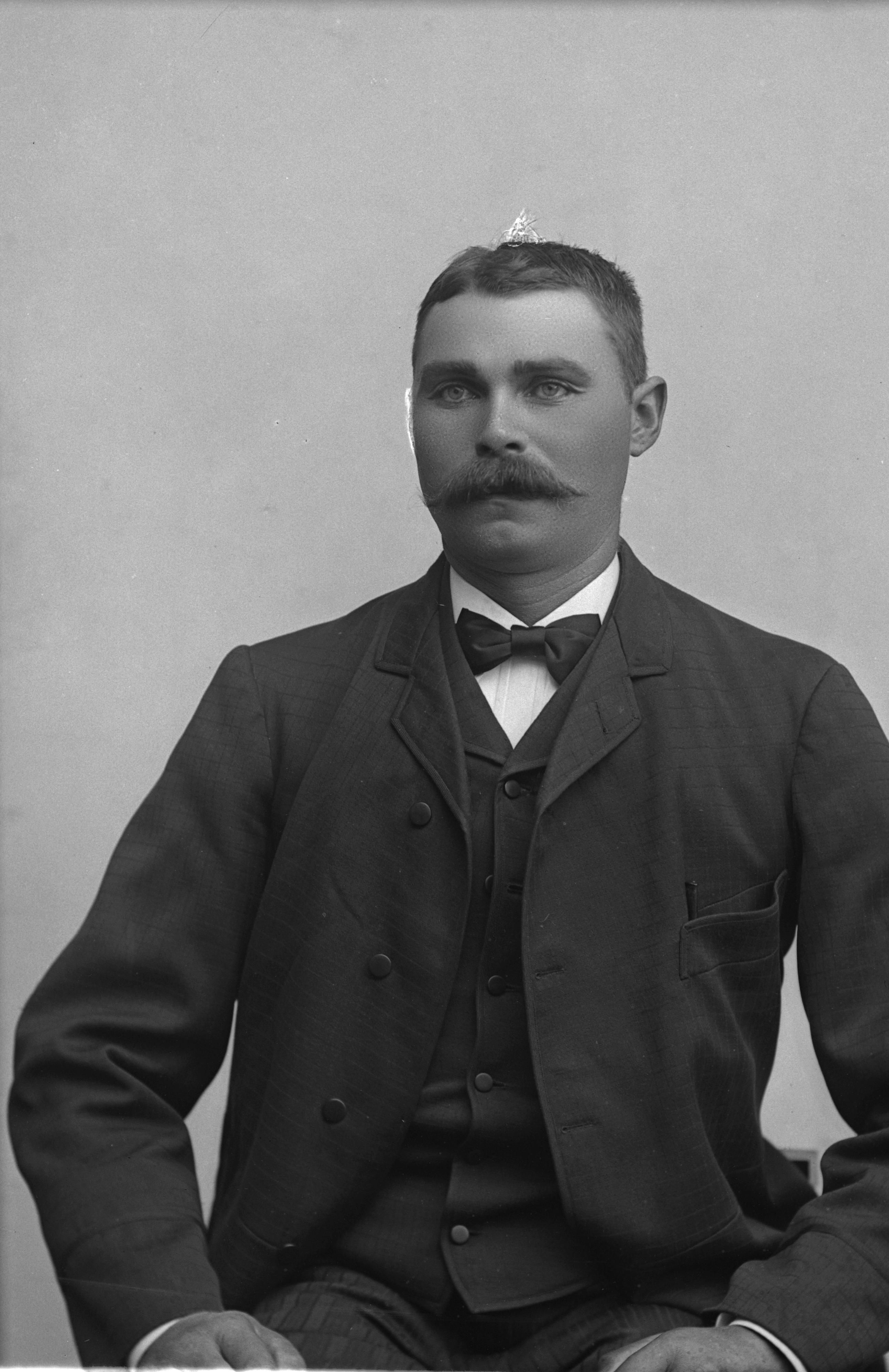 Beskrivning: Porträtt i halvfigur av Ola Jonsson.