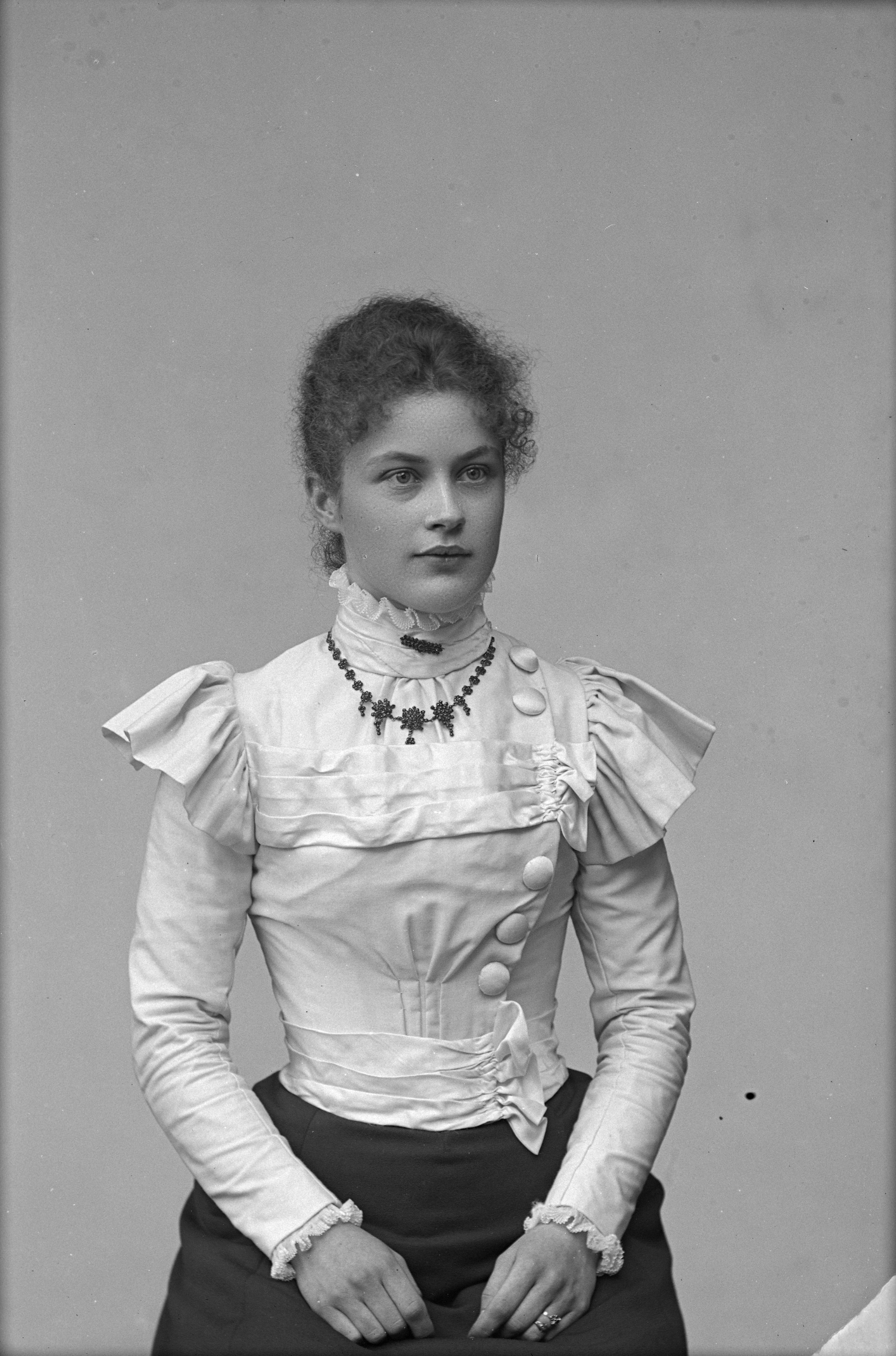 Beskrivning: Porträtt halvfigur av Lydia Nilsson.