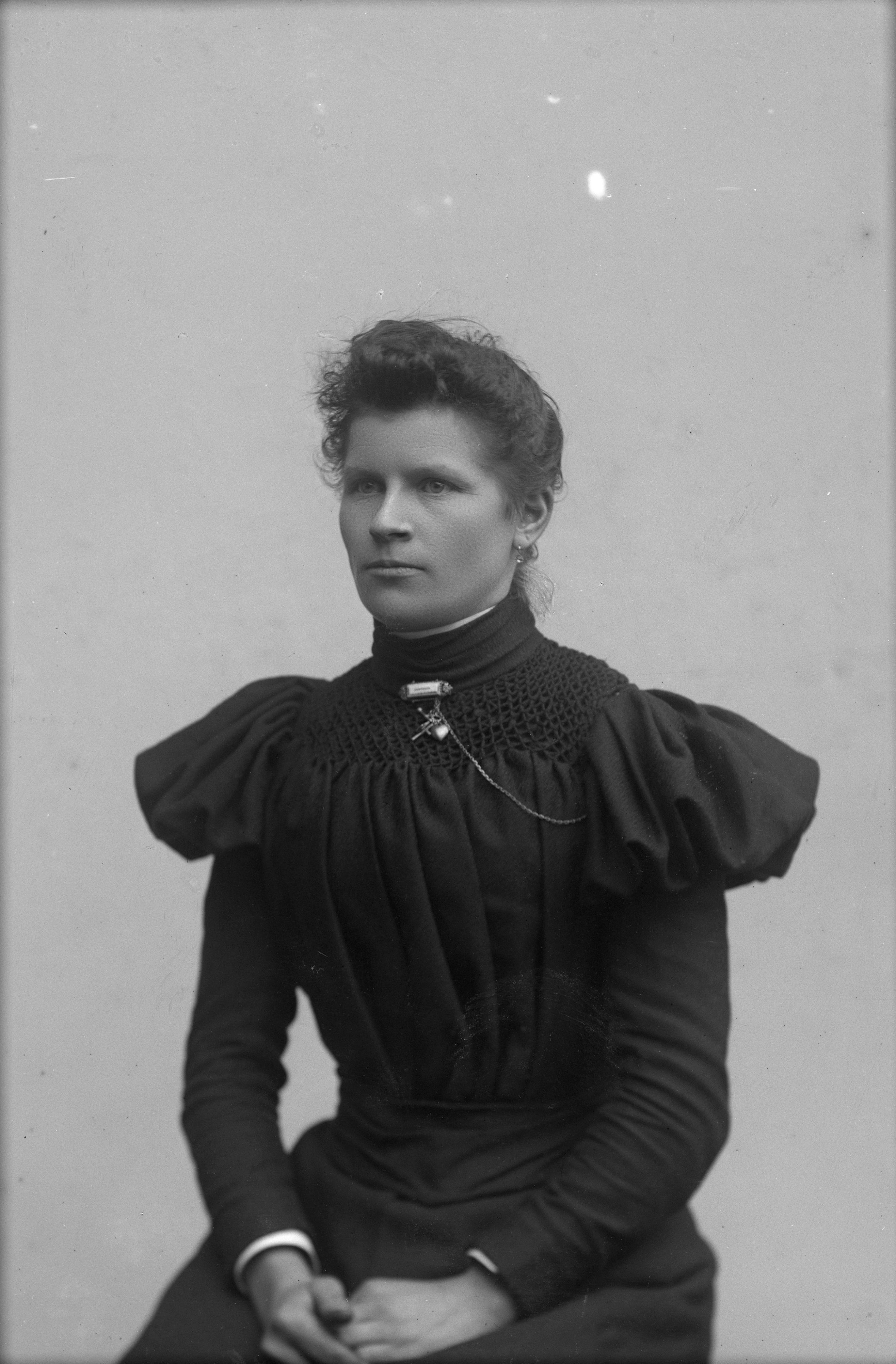 Beskrivning: Porträtt i halvfigur av Matilda Adamsson.