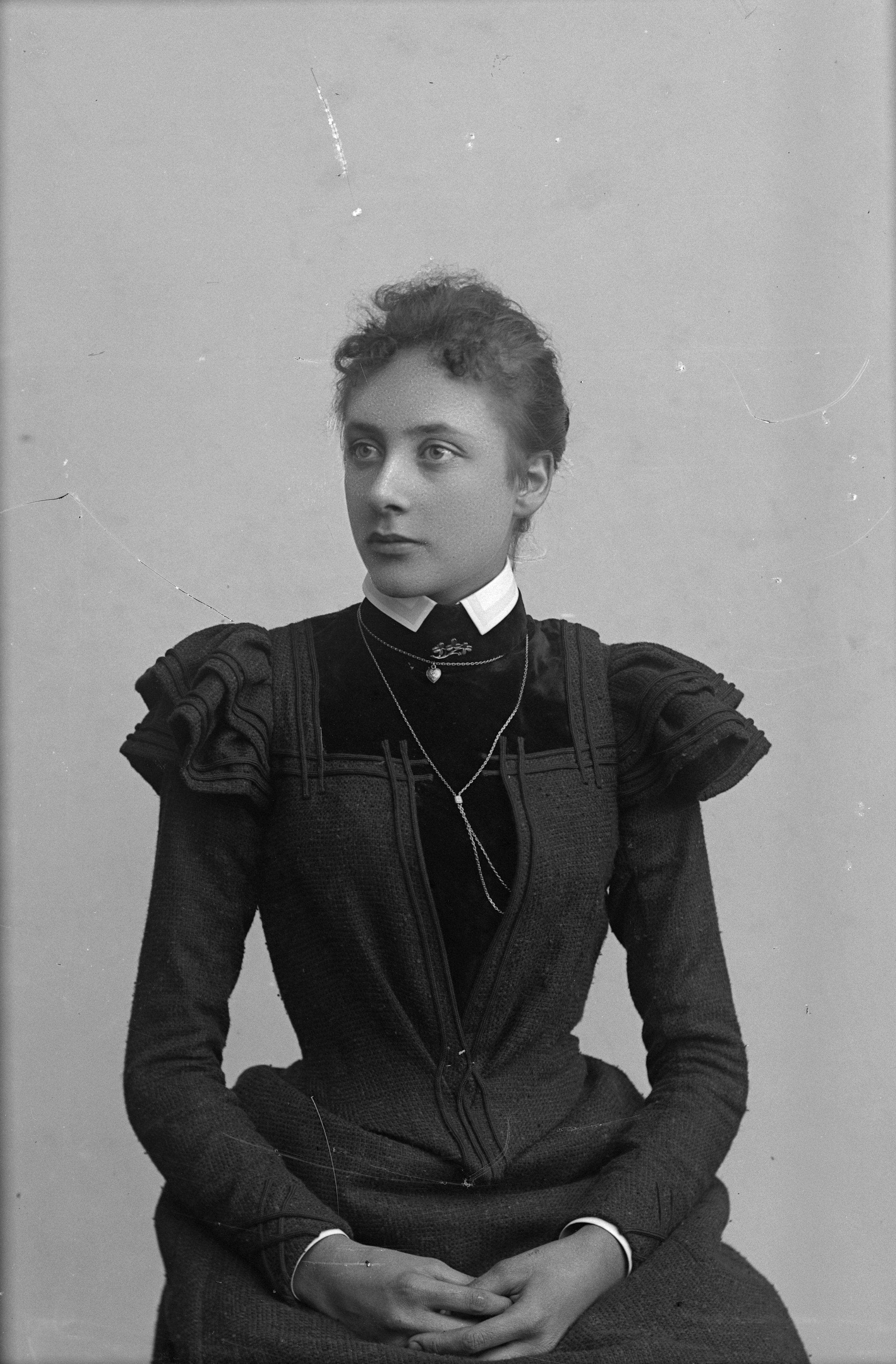 Beskrivning: Porträtt i halvfigur av Ida Strömberg.