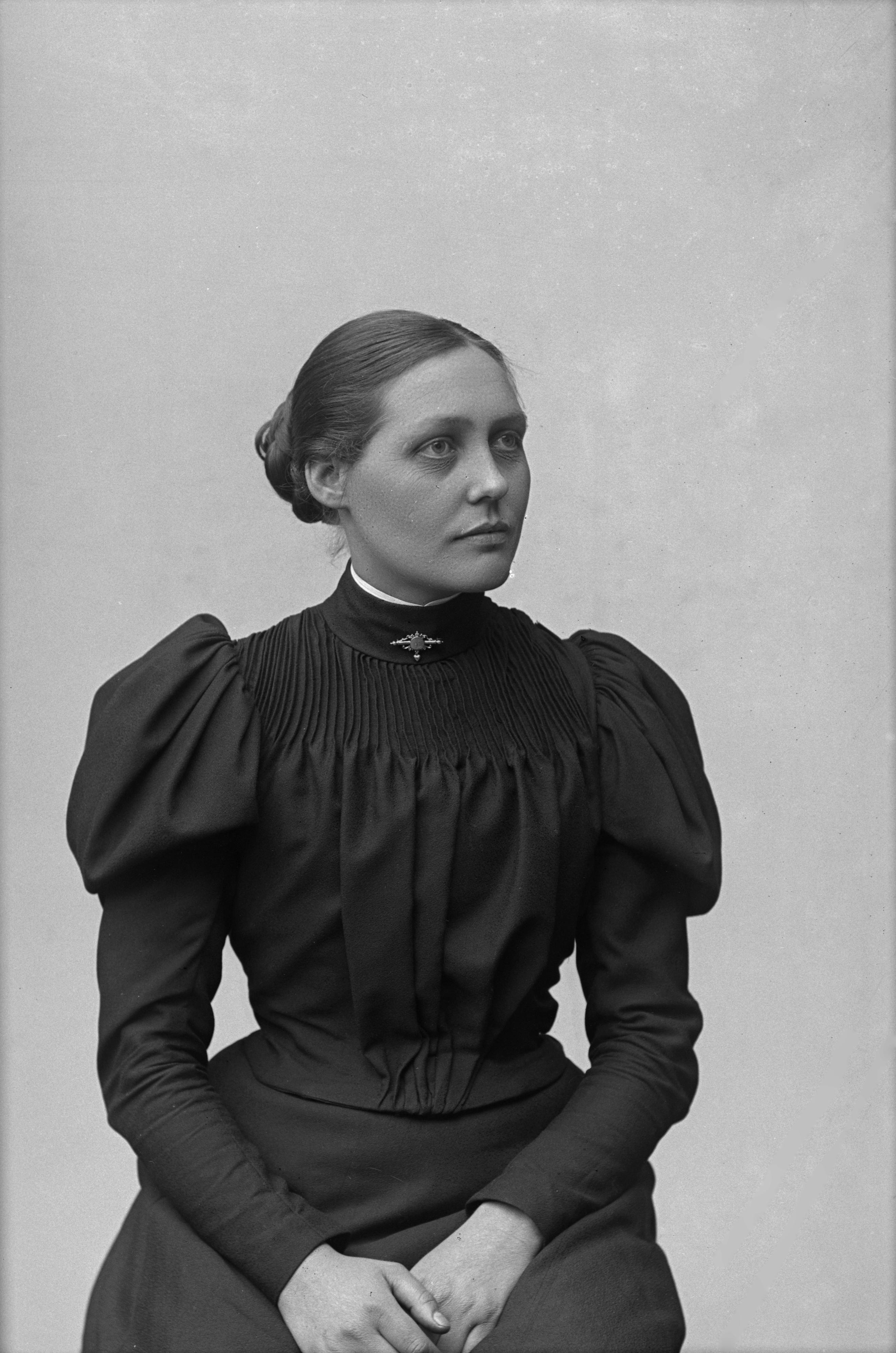 Beskrivning: Porträtt i halvfigur av Cecilia Larsson.