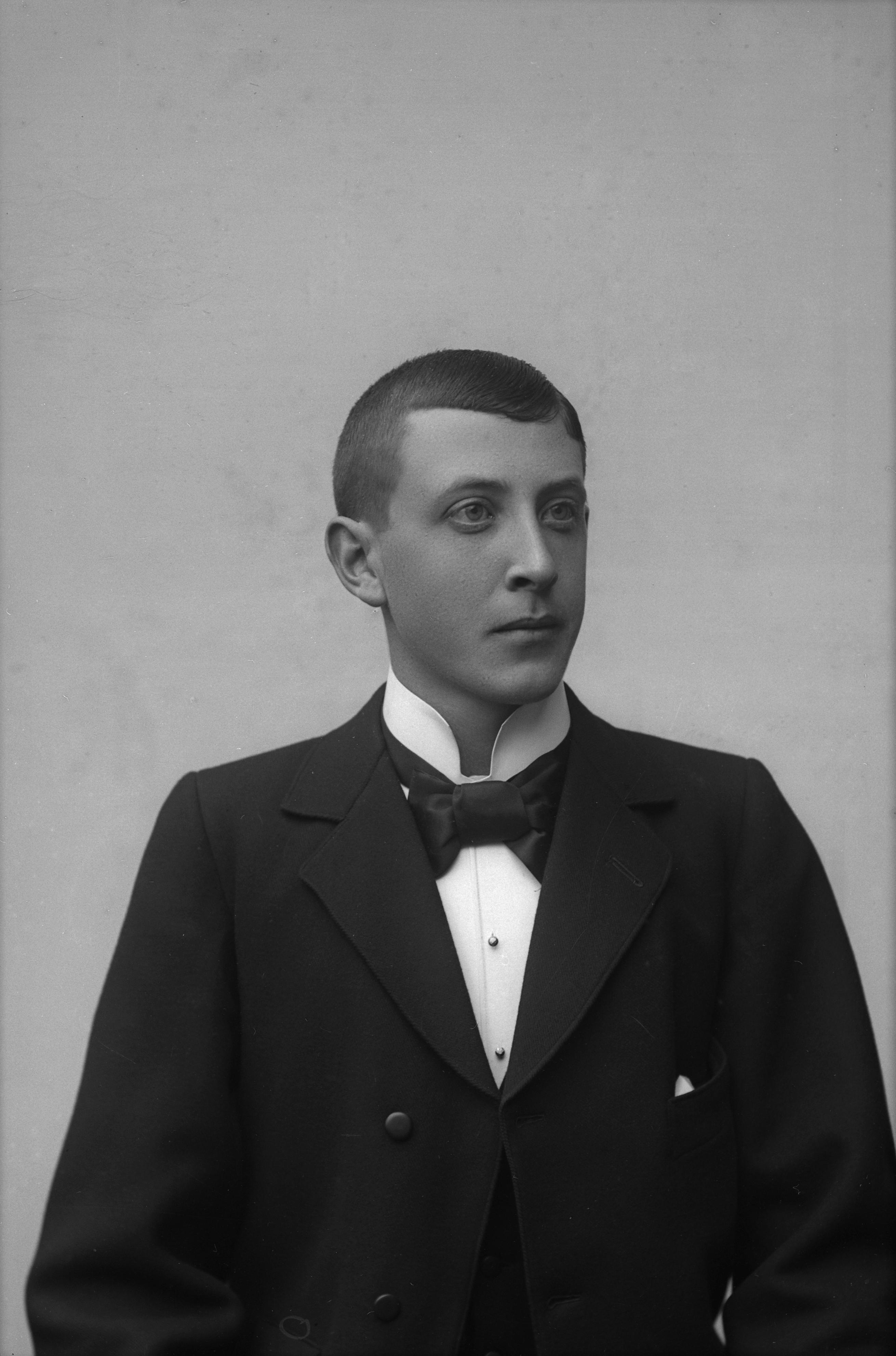 Beskrivning: Porträtt i halvfigur av Axel Blomberg.