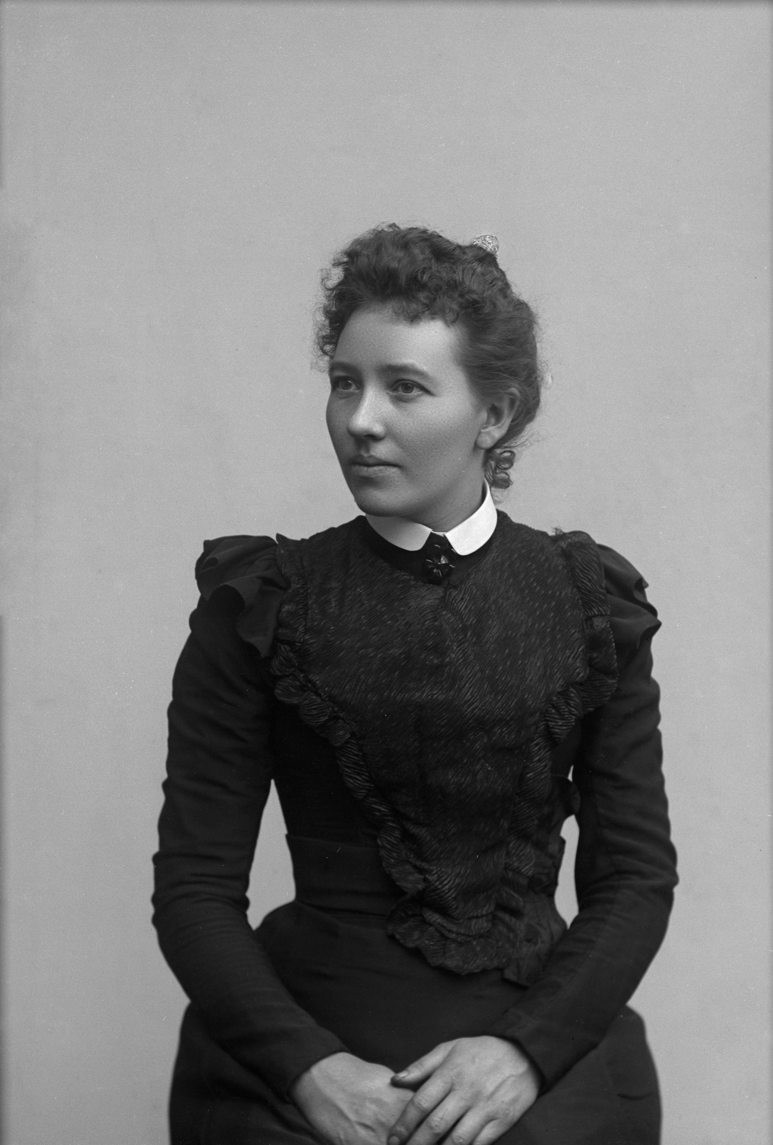 Beskrivning: Porträtt i halvfigur av Jenny Nilsson.