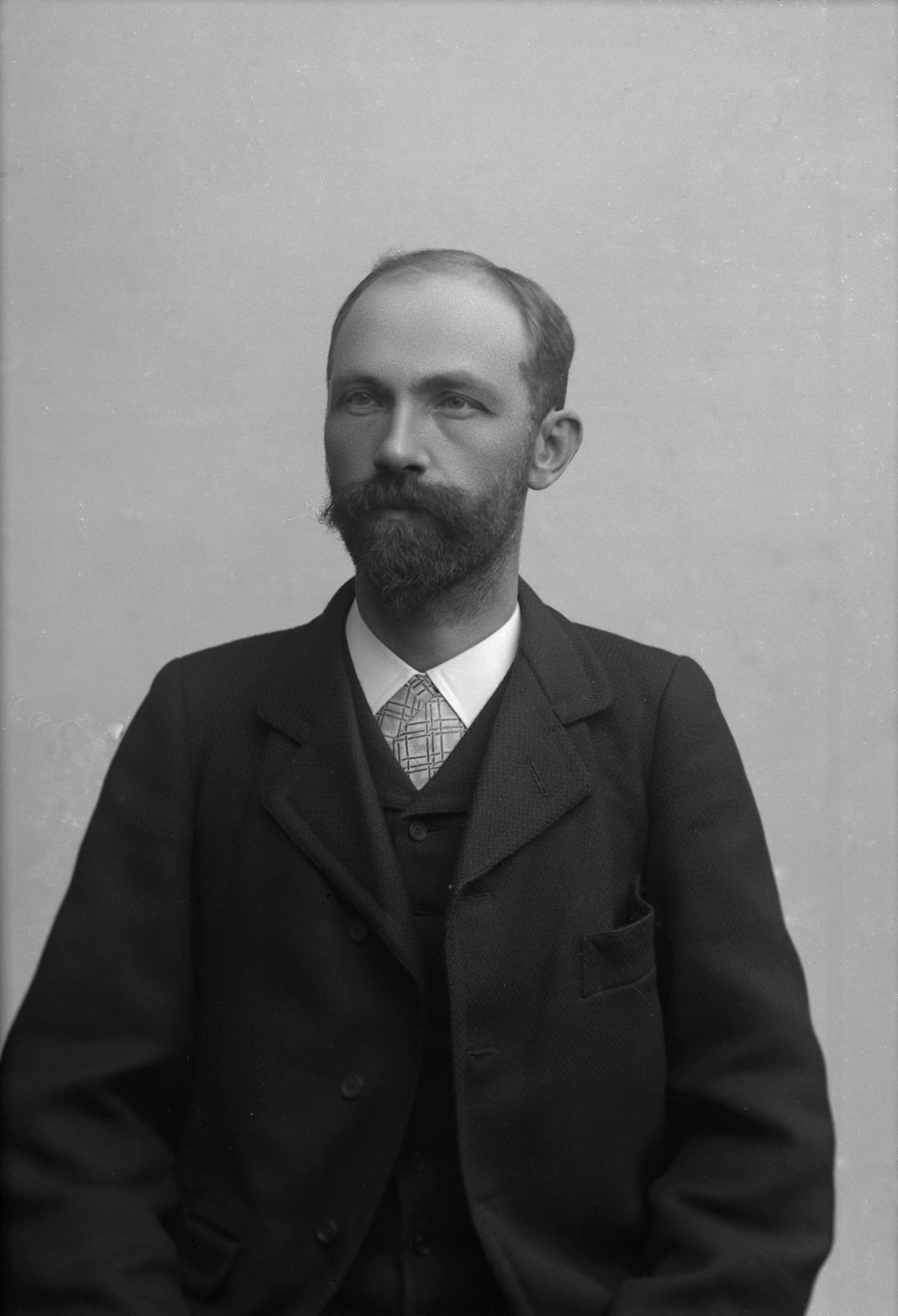 Beskrivning: Porträtt i halvfigur av folkskollärare Johan Oscar Laurin.