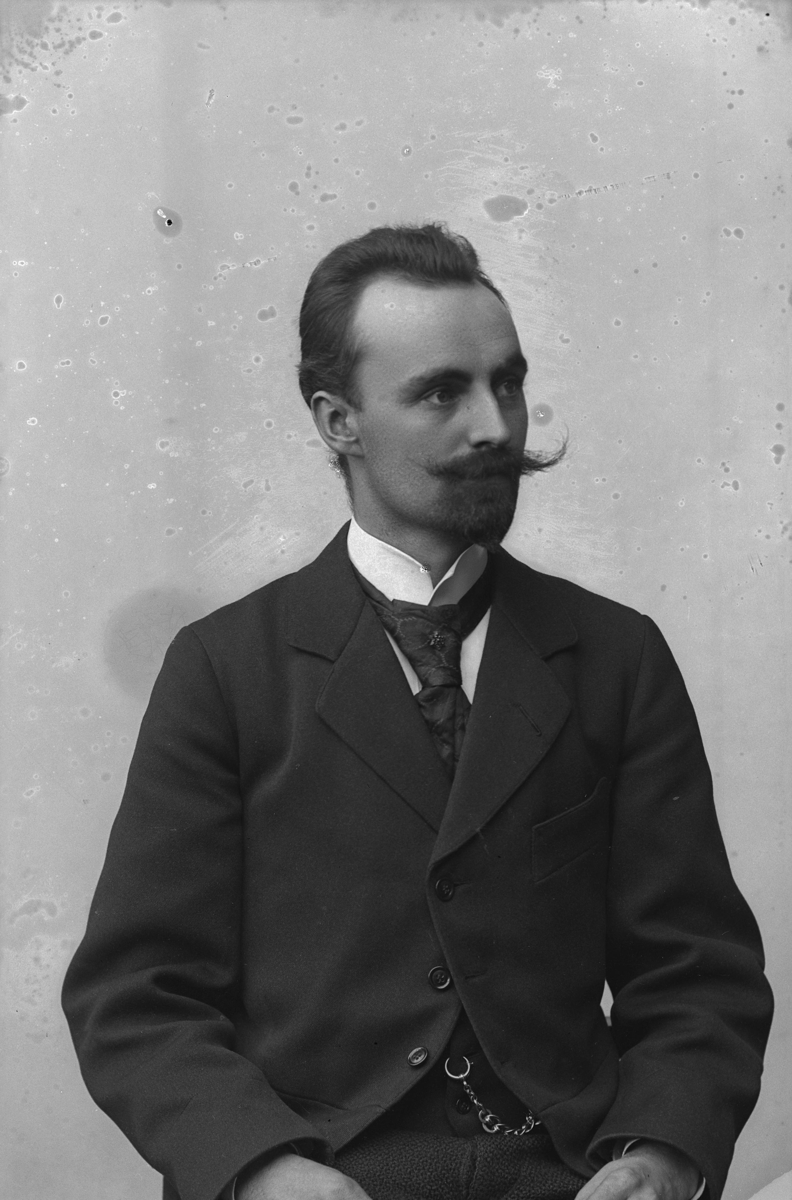 Beskrivning: Porträtt i halvfigur av folkskollärare Ekström.