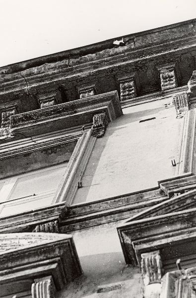Gatufasad, detalj 3:e våningen och taklist på Trädgårdsgatan 25, Kv. Ruuth 21, före rivningen 1973.