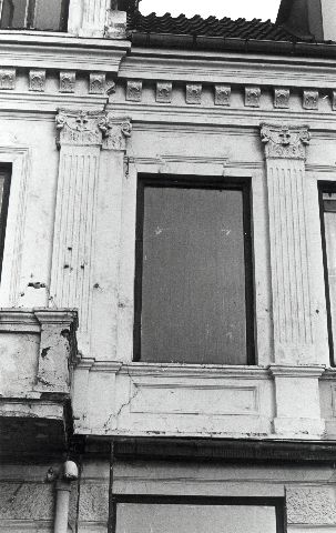 svartvitt fotografi föreställande byggnadsexteriör och fönster på Drottningatan 42, kvarter Fiskaren 13. År 1974.