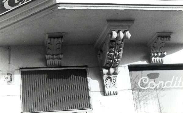 svartvitt fotografi föreställande konditori/kafé "Signe Bergqvist"s byggnadsexteriör. Drottninggatan 44, kvarter Fiskaren 14. År 1974.